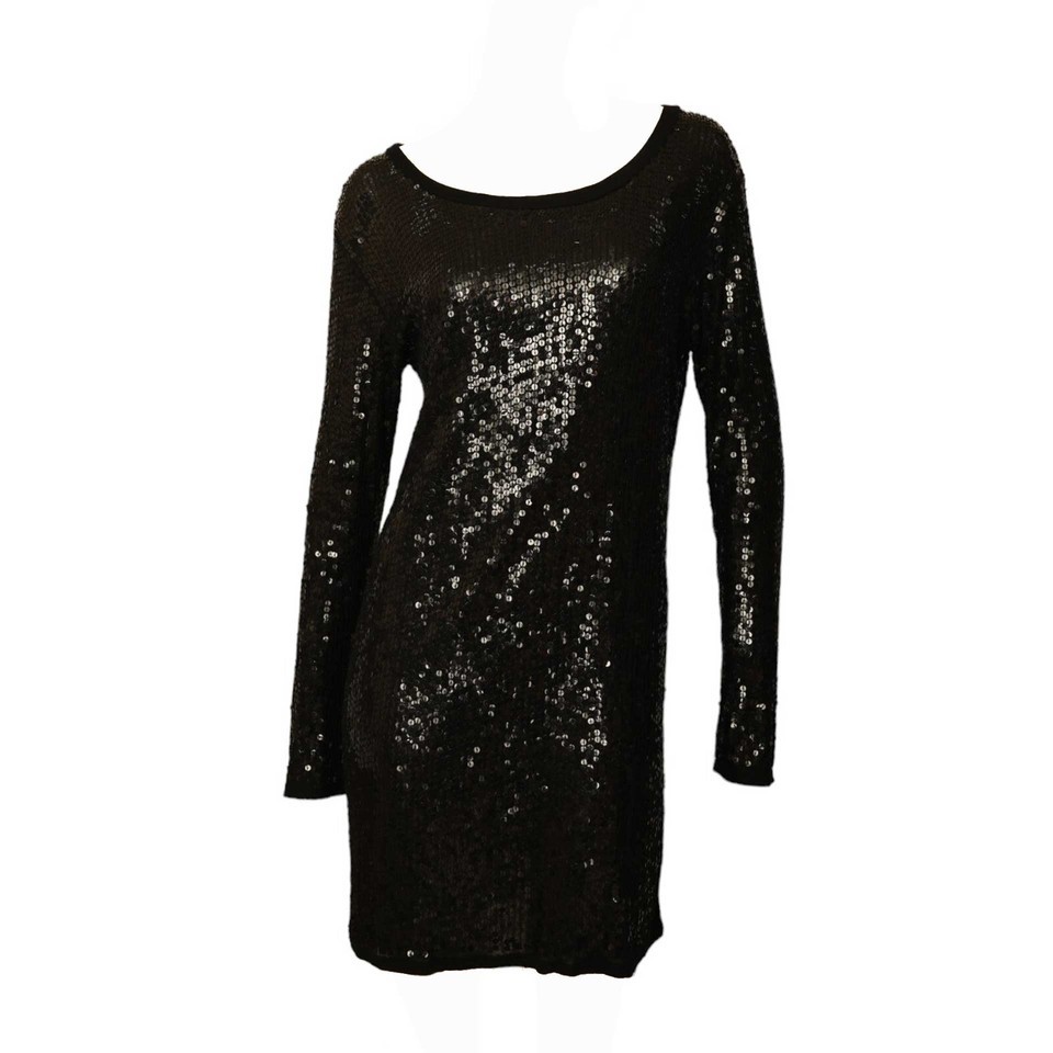 Chloe Black Fully Sequined Long Sleeves Short Mini Length Dress size S