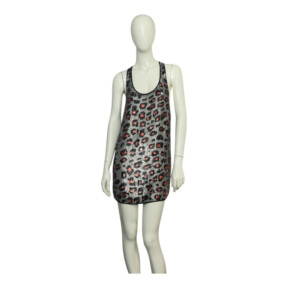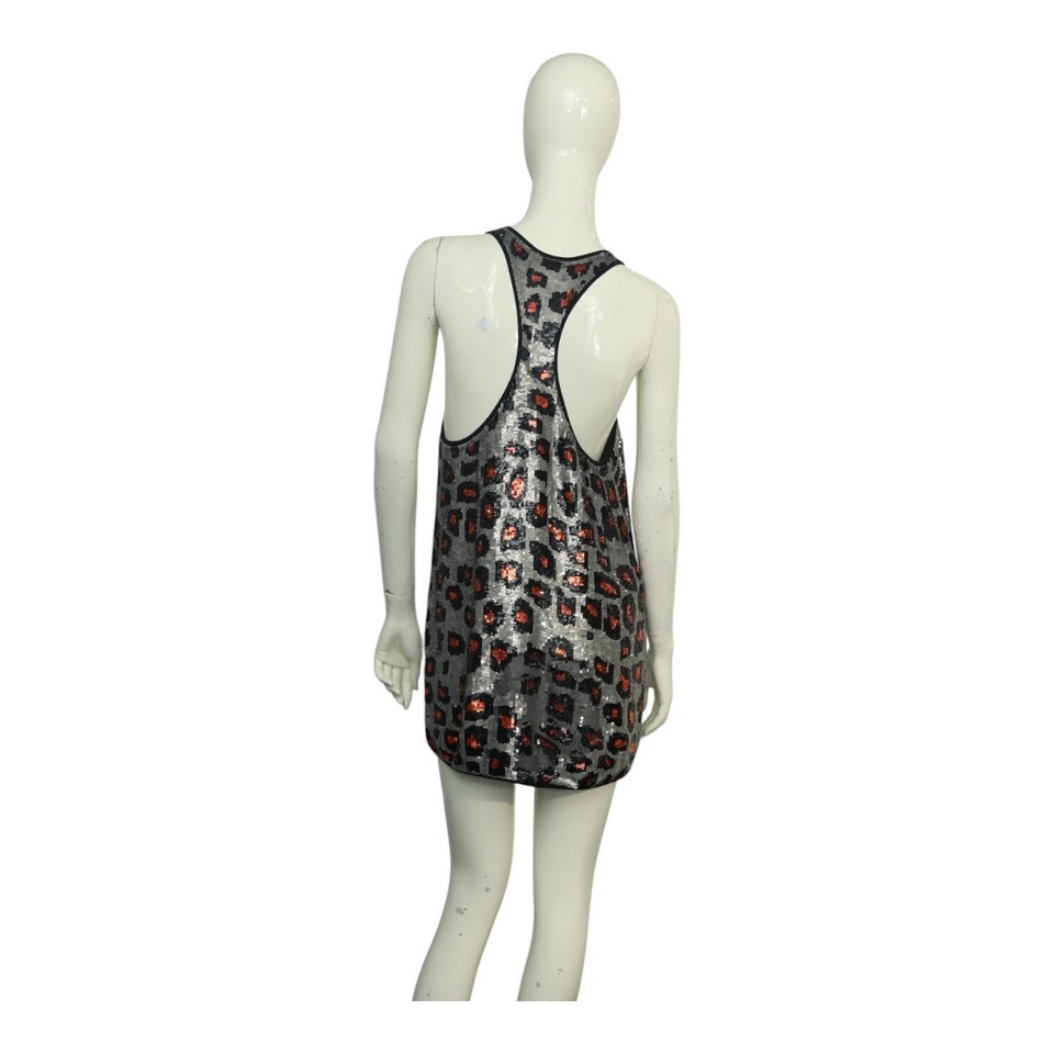 Ashish Silvery Fully Sequined Leopard Print Mini Length Tank Dress size S