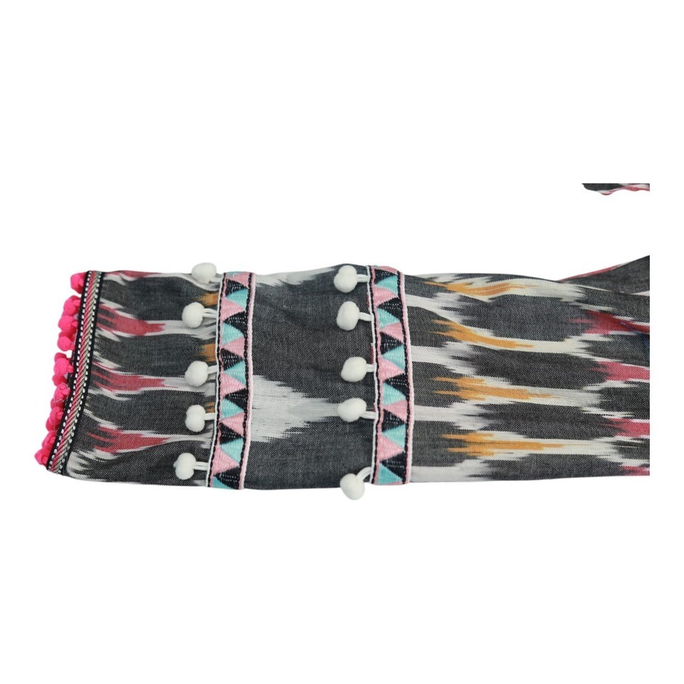 This amazing multicolor dress with bohemian ethnic pattern is here for you, to look stylish all day!! It features 3/4 sleeves, neckline with pom poms, long length and comfortable fit.