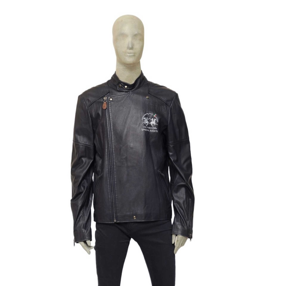 La Martina Maserati Midnight blue men's leather jacket side zip front size XL