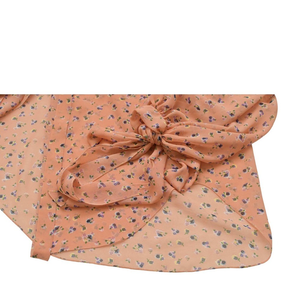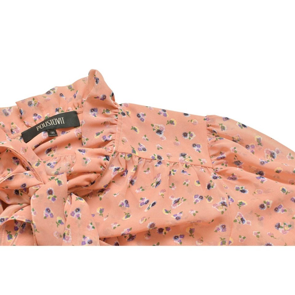 Poustovit Pink Floral Long Sheer w. Large Bows Button Down Shirt size 38