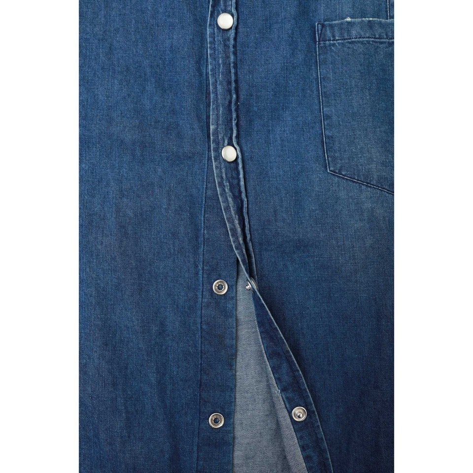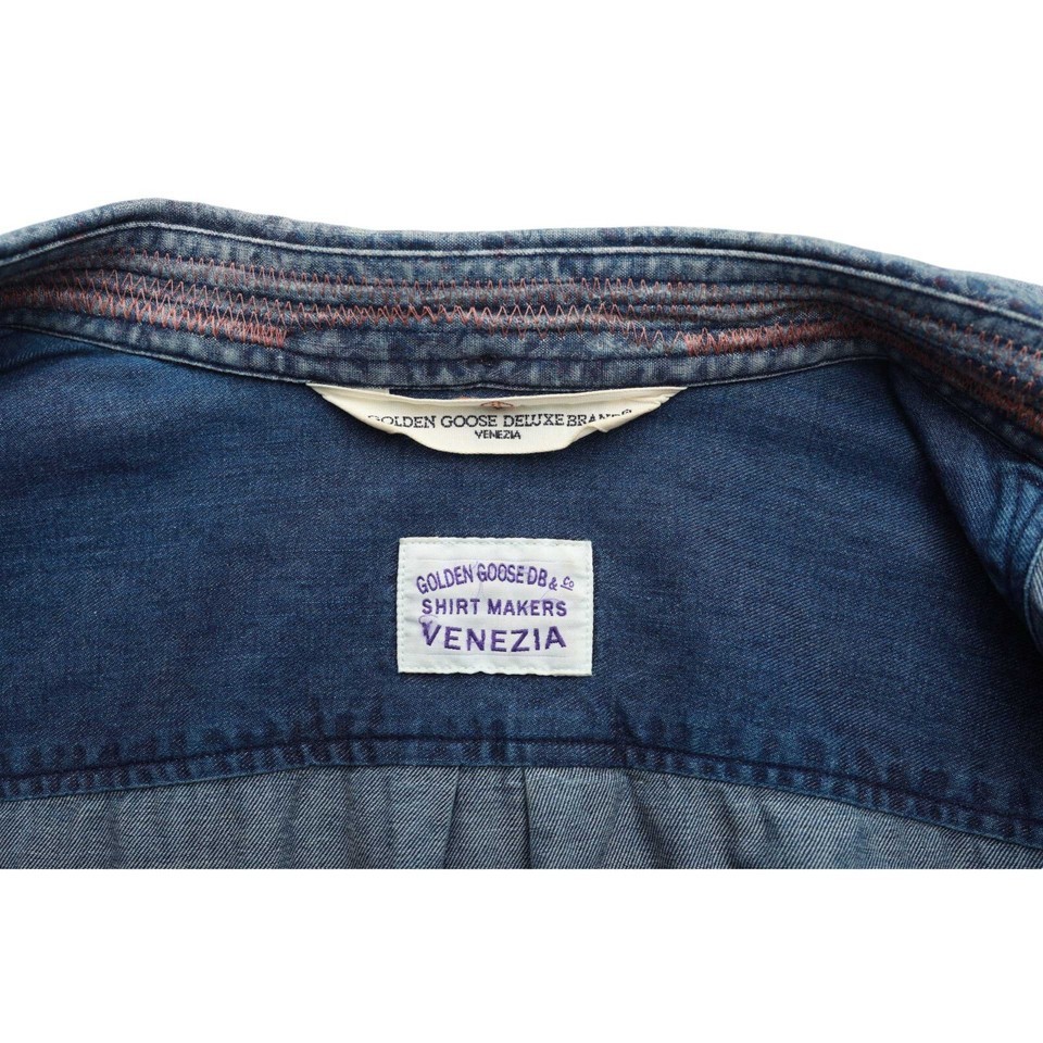 Golden Goose Blue Denim Floral Collar Snap Button Down Distressed Look Shirt - M