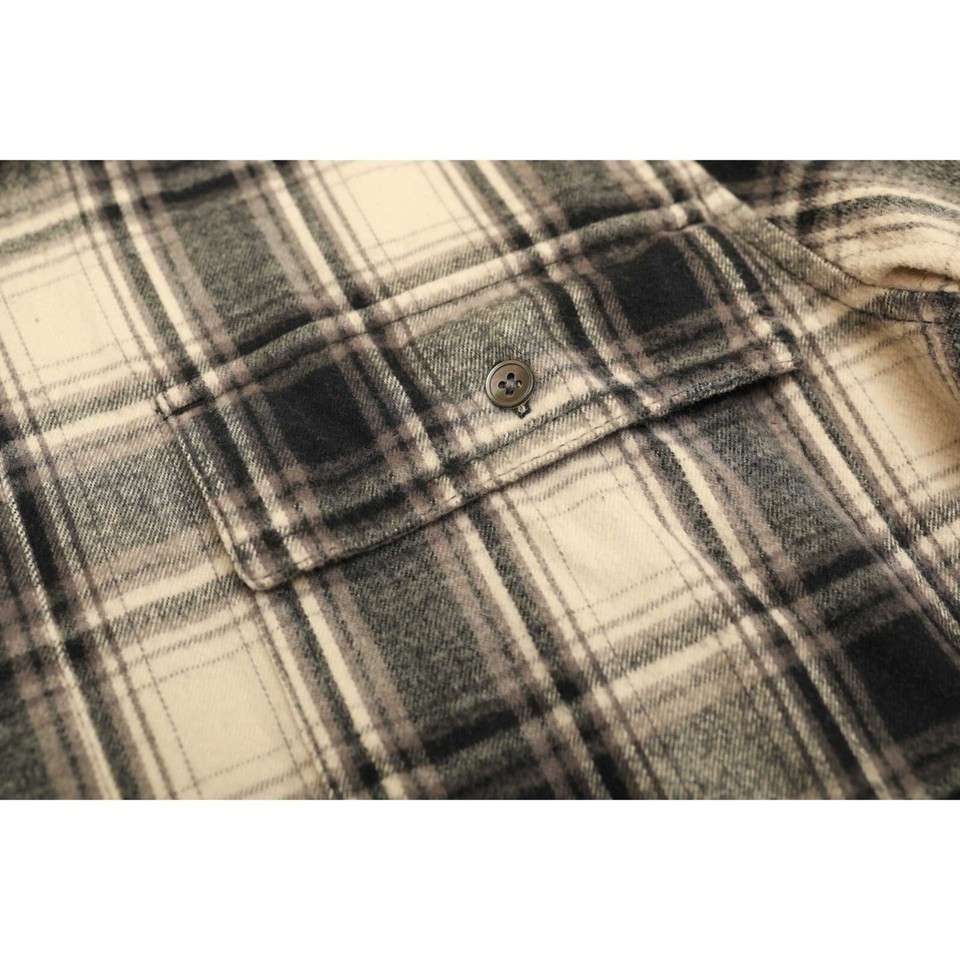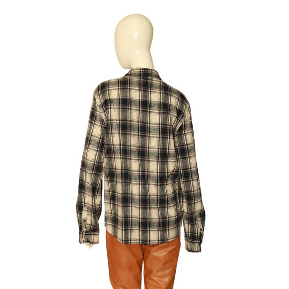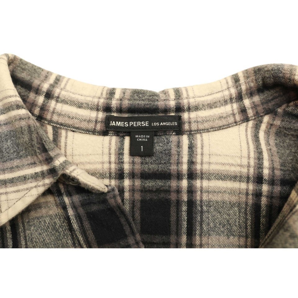 James Perse Cream Black Check Cotton Button Down Flannel Shirt Top size 1