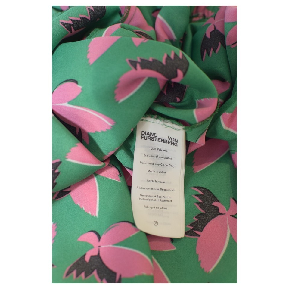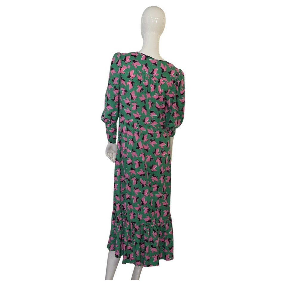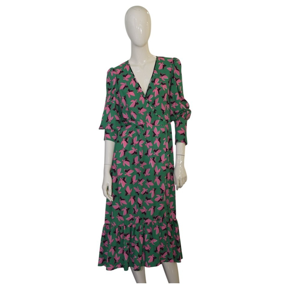 DVF Diane Von Furstenberg Glamazon Green Pink Floral Calf Length Dress size 10
