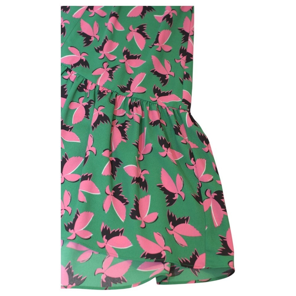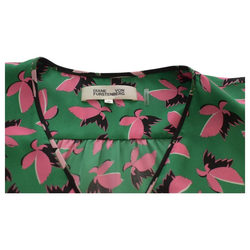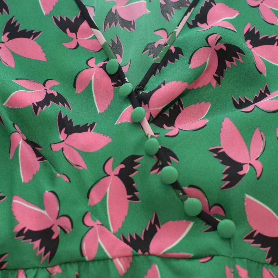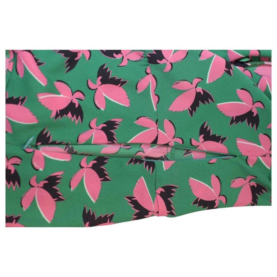 DVF Diane Von Furstenberg Glamazon Green Pink Floral Calf Length Dress size 10