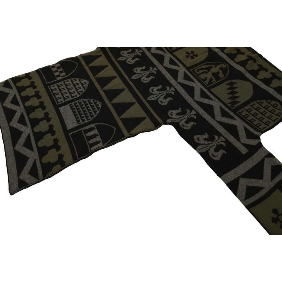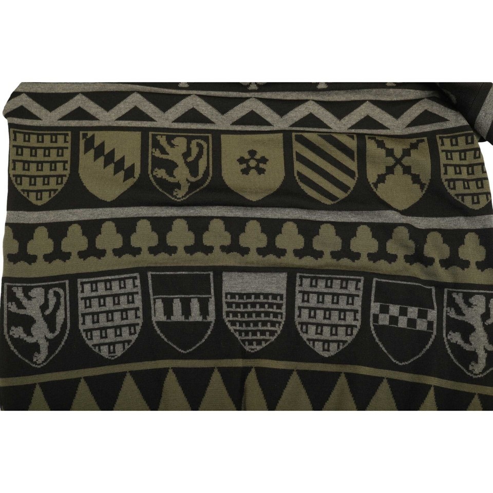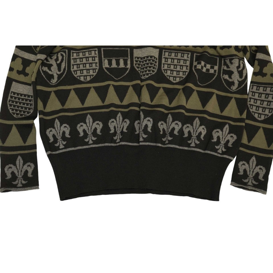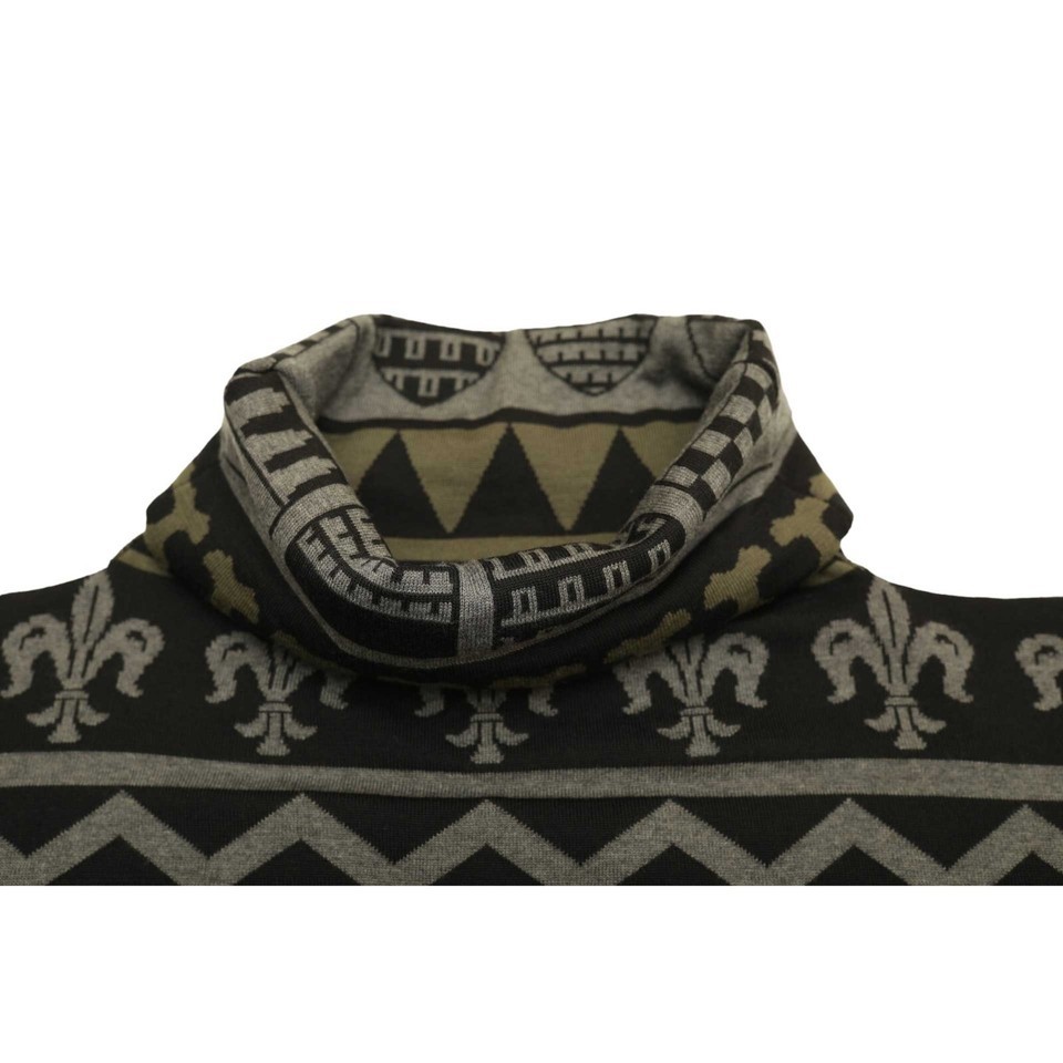 Beautiful and stylish Stella McCartney knit top! This designer fashion item will be a very special addition to your wardrobe. It features luxurious wool- cashmere knit with medieval emblems pattern in black, gray and khaki colors, cowl neck and long sleeves. Combine this stunning top with a pair of trousers and feel wonderful all day long!