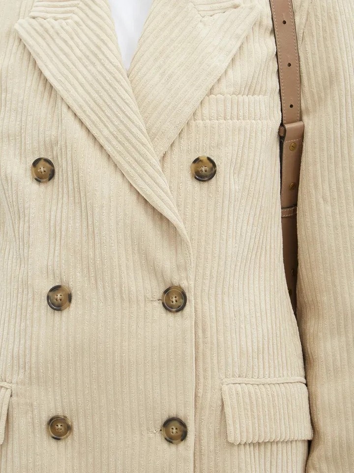 Isabel Marant Etoile nods to the 1970s with this beige double-breasted Daleyo blazer. It's crafted from wide-wale corduroy with padded shoulders and peak lapels, then lined with beige satin and finished with faux-horn buttons. Layer it over a blouse and jeans for a carefree vibe.