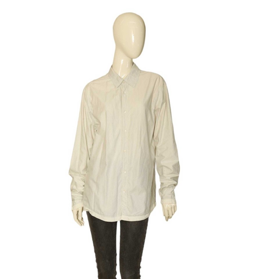 This James Perse shirt top features lovely striped pattern in white and black colors, collared neck with button down closure and long sleeves. It is lined with jersey type fabric for extra warmth. A perfect everyday casual piece for fashion lovers with a style !!