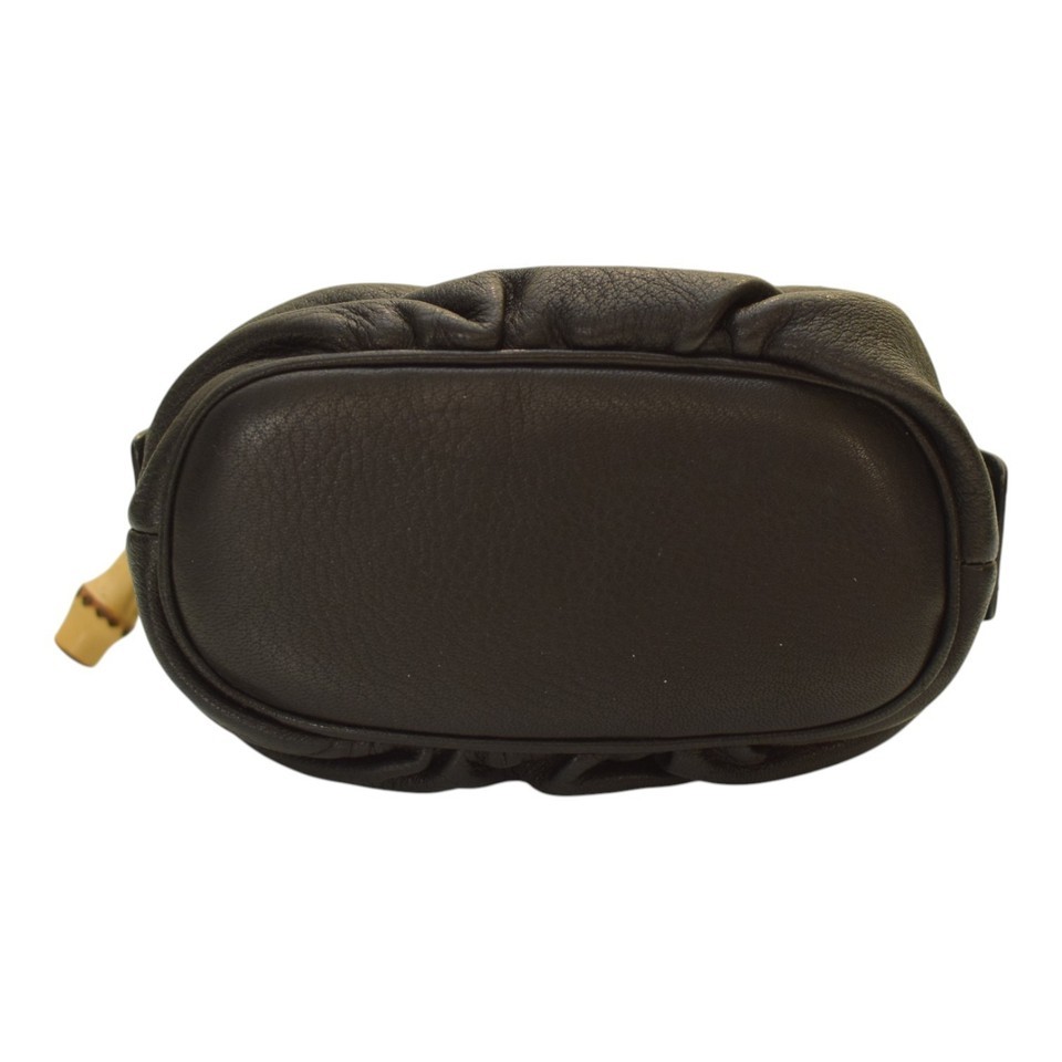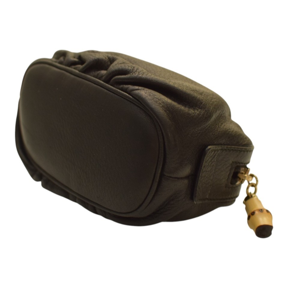 GUCCI Vintage Black Leather Bamboo Zip Clutch Bag in black soft leather