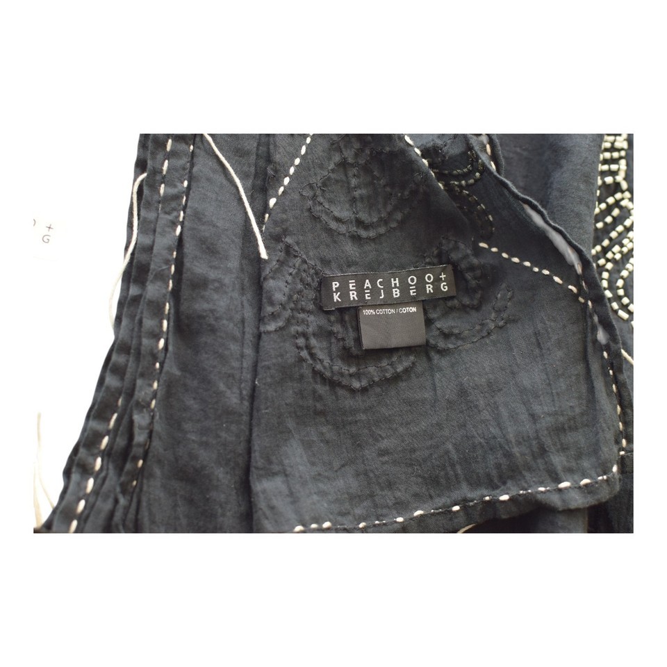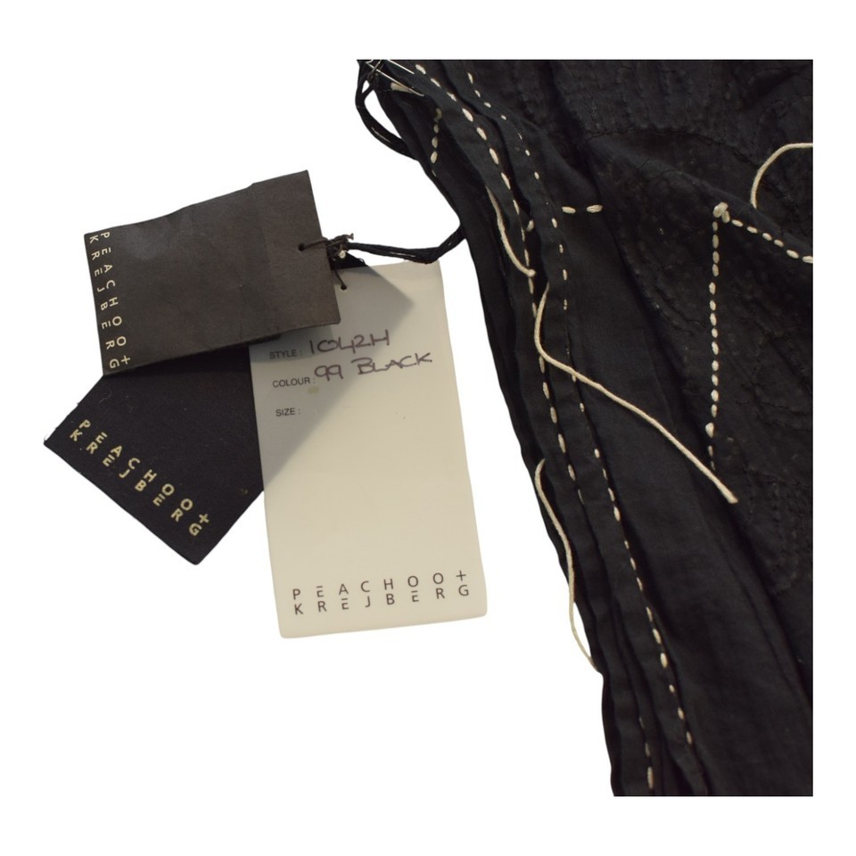Add an artistic, bohemian-luxe edge to your wardrobe with this exquisite Peachoo + Krejberg black long scarf. Known for their avant-garde elegance, the Paris-based design duo combines modern minimalism with intricate detailing, creating statement accessories like this one.
