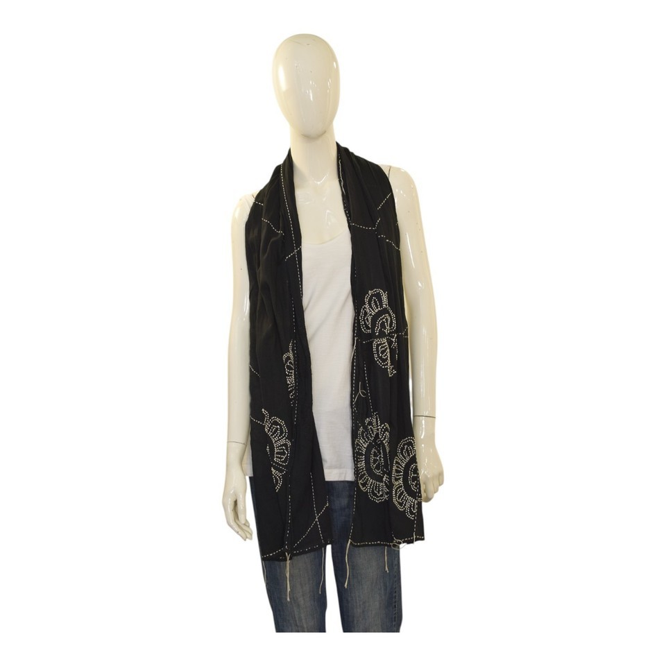 Peachoo + Krejberg Black Embellished Long Scarf ? Floral Beadwork Design ? NWT