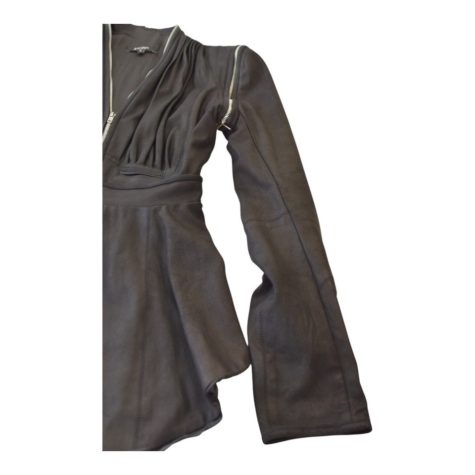 Gardem Paris black leather convertible peplum asymmetrical jacket gilet Sz 1