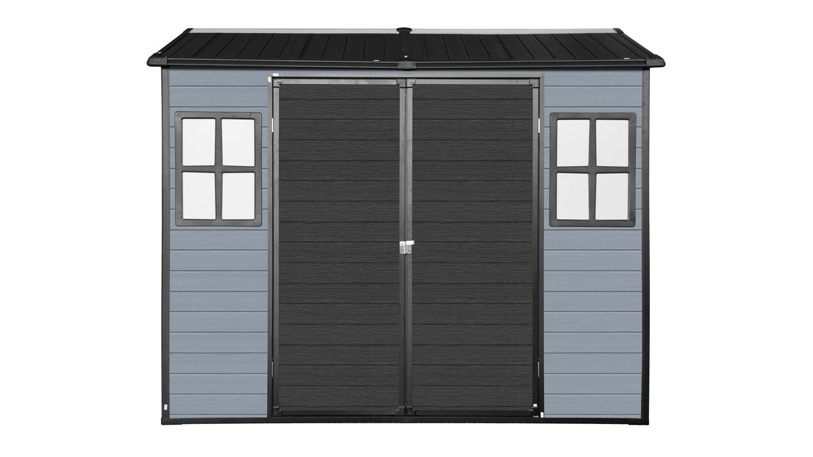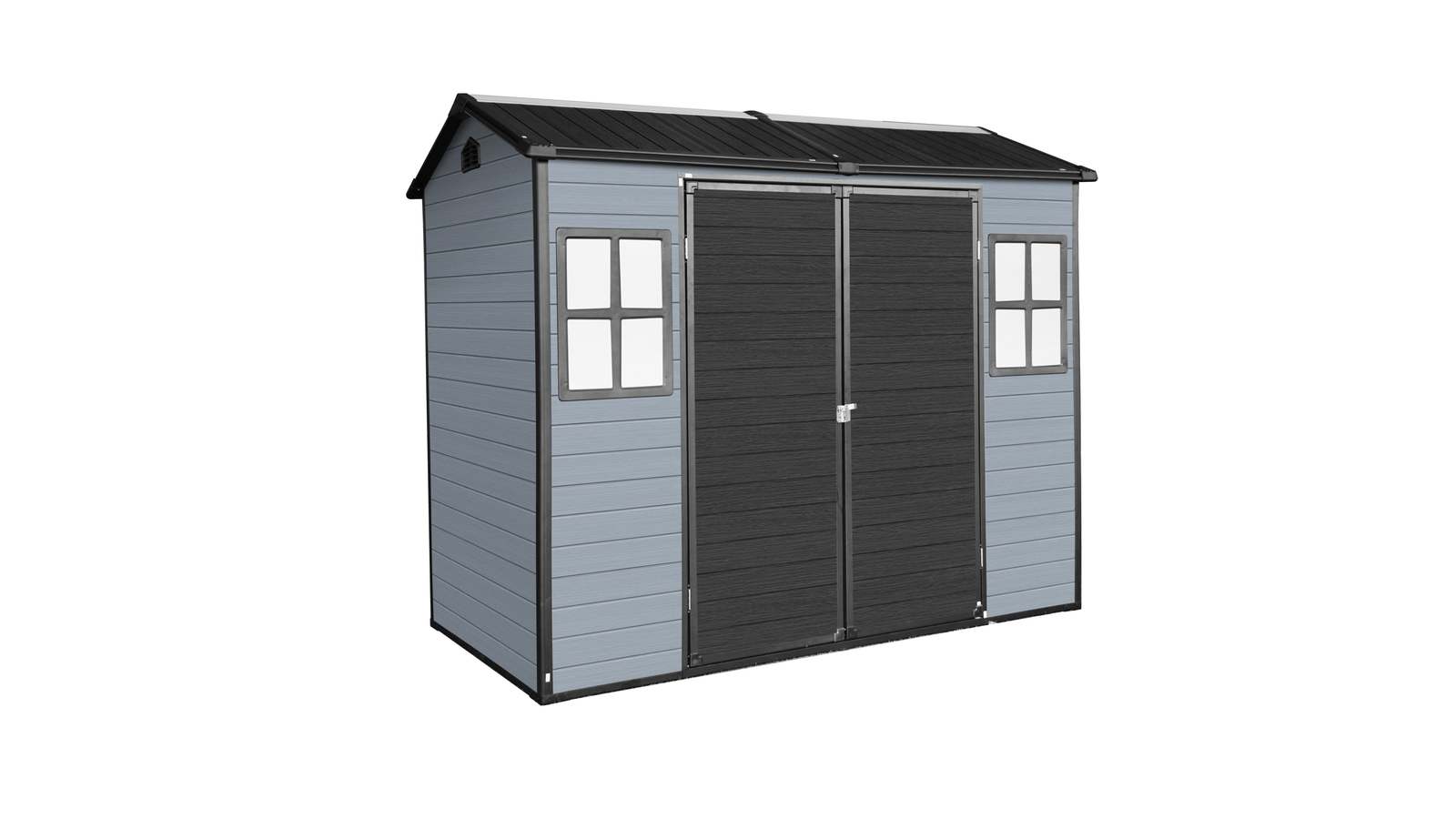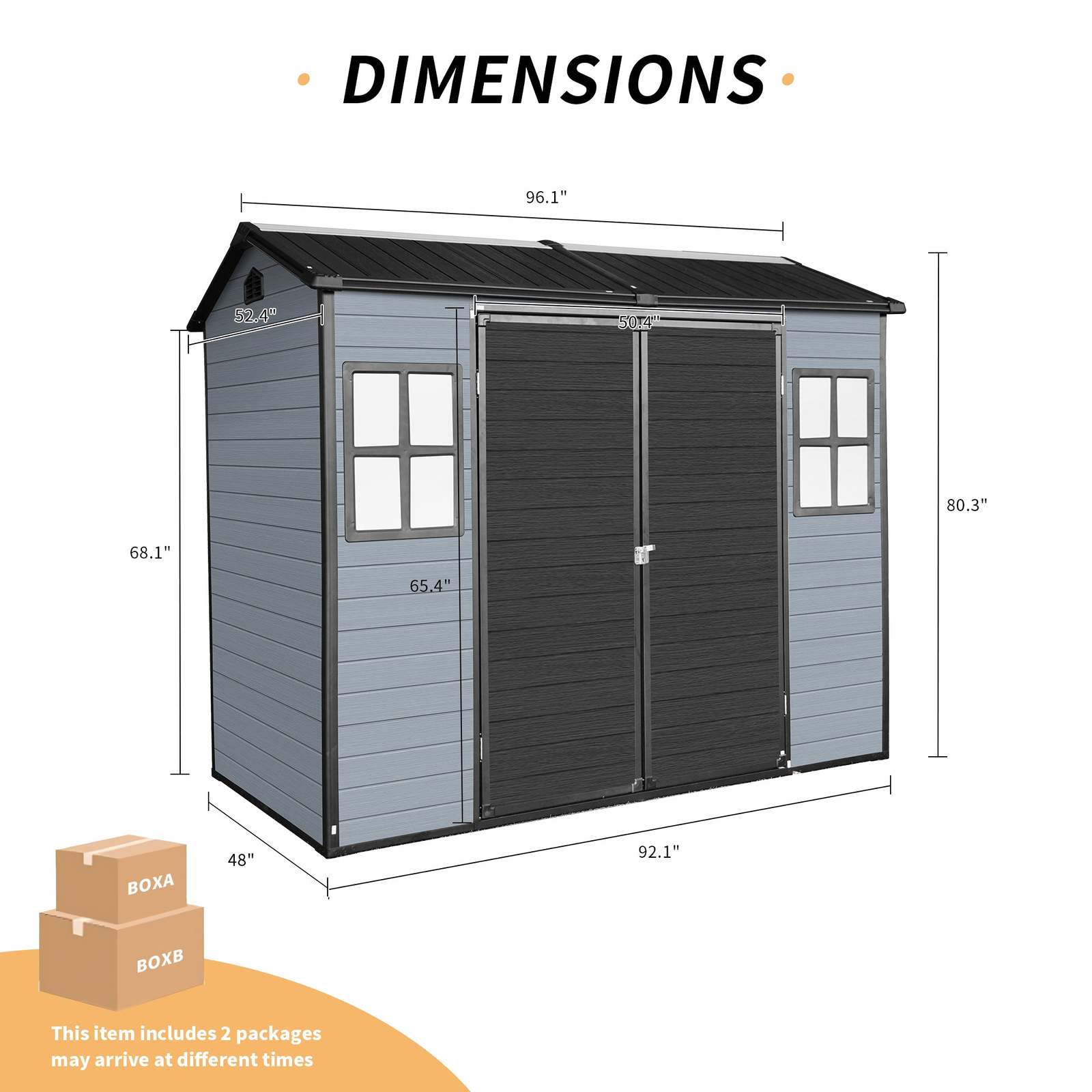 Durable Resin Shed: This 8x4ft outdoor storage shed is equipped with two windows, allowing natural light to keep the interior dry and fresh. The lockable door ensures added security, making it ideal for safely storing garden tools and equipment in your backyard or garden.