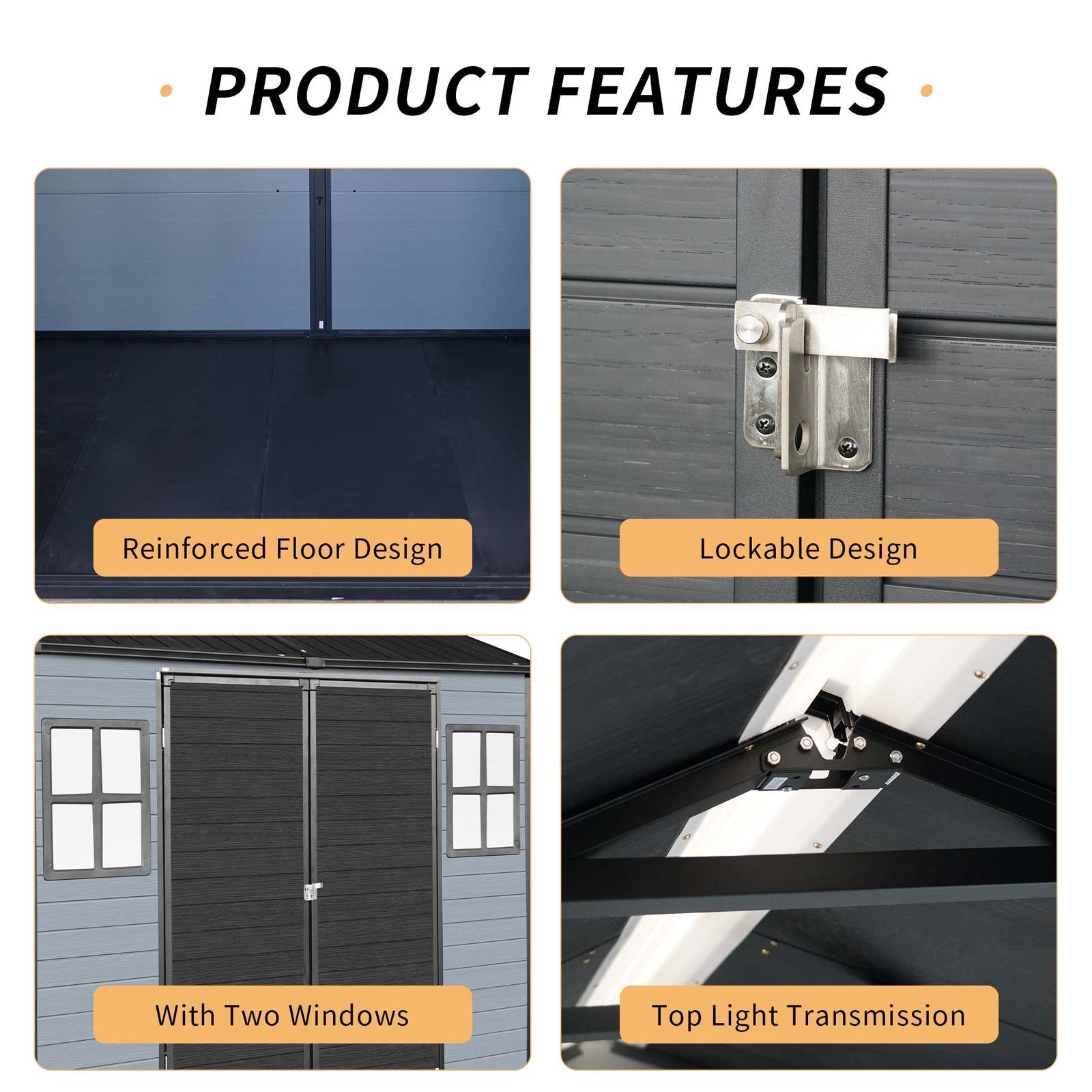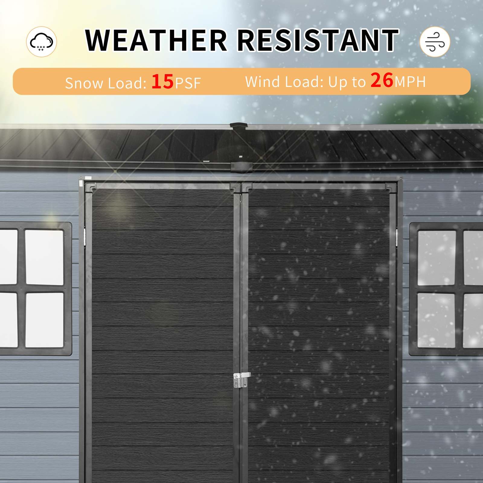 High-Quality Double-Layer Material: Made of 14mm thick polypropylene double-layer resin plastic, this resin shed is built to last. It?s recyclable, corrosion-resistant, waterproof, and rust-proof, providing a maintenance-free storage solution that?s perfect for all weather conditions.