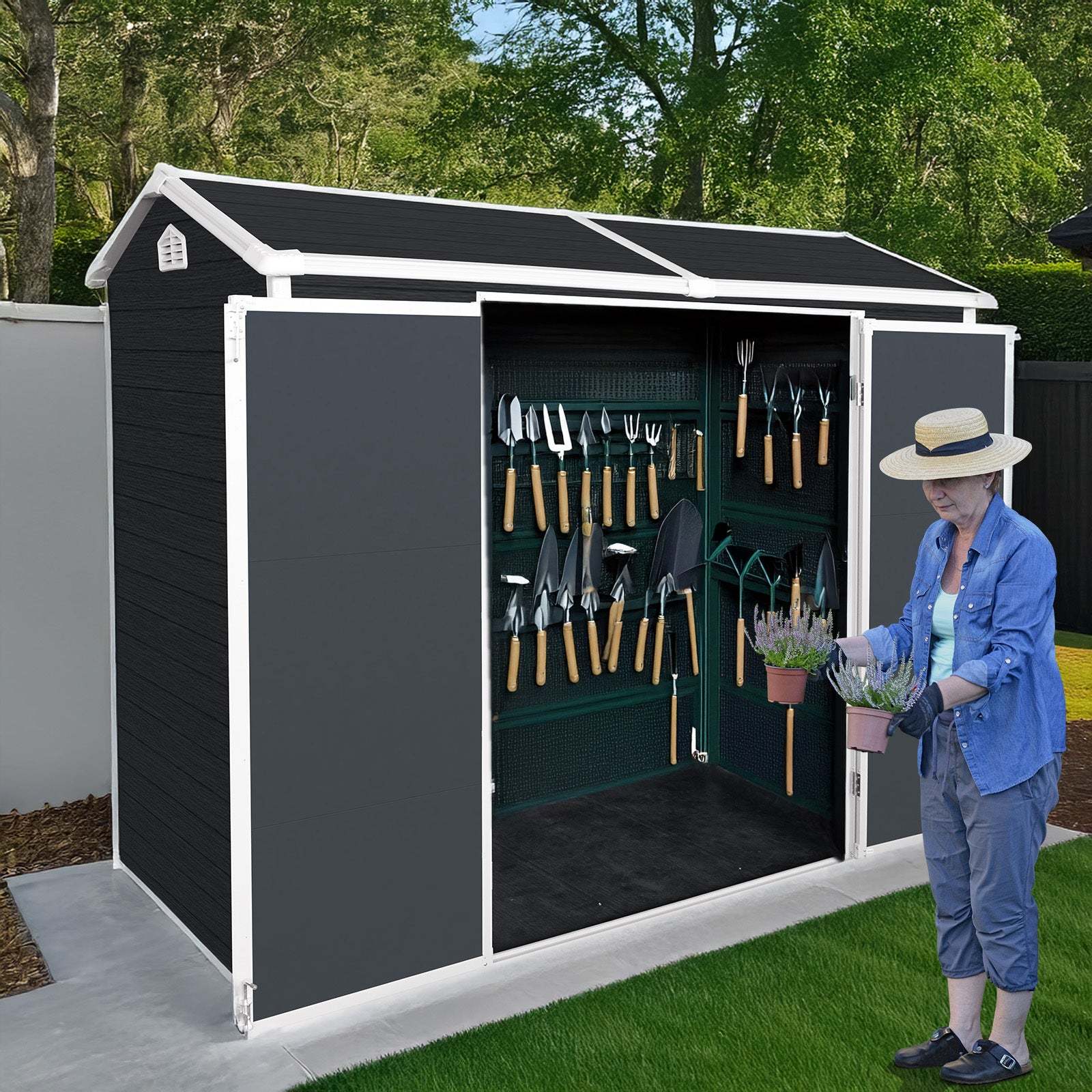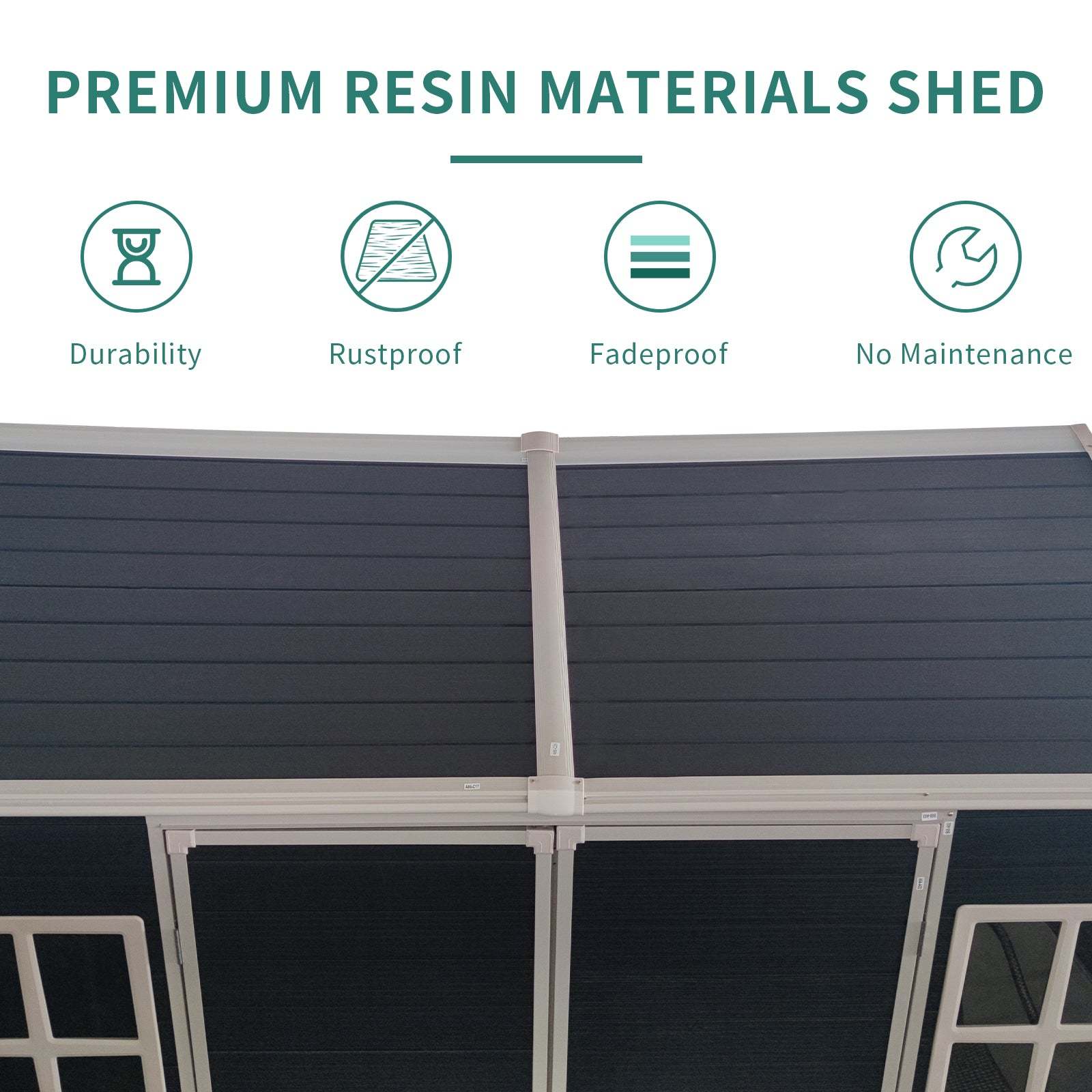 High-Quality Double-Layer Material: Made of 14mm thick polypropylene double-layer resin plastic, this resin shed is built to last. It?s recyclable, corrosion-resistant, waterproof, and rust-proof, providing a maintenance-free storage solution that?s perfect for all weather conditions.