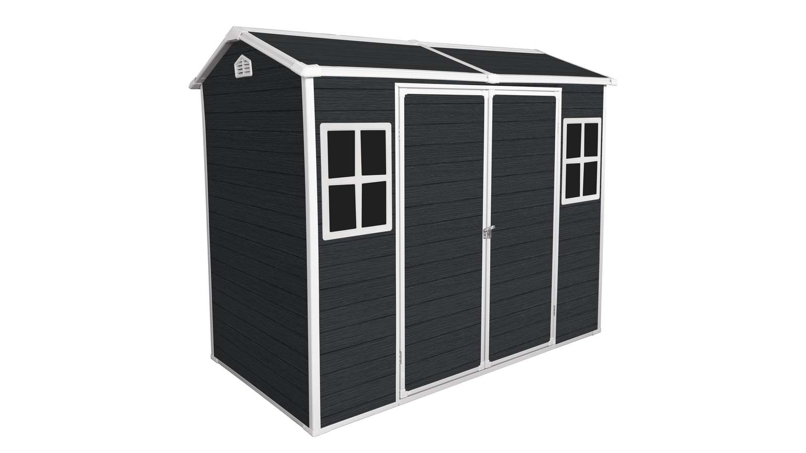 8x4ft Black Resin Outdoor Storage Shed - Floor, 2 Windows, Lockable