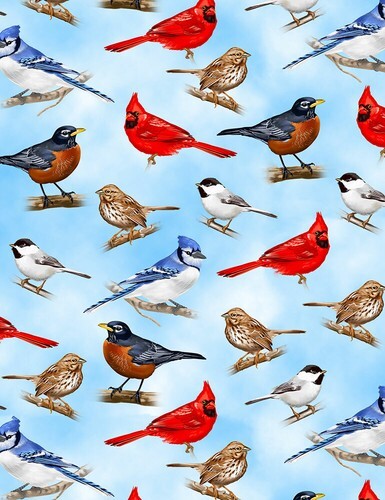 Cotton Cardinals Bluejays Finches Sparrows Birds Fabric Print by Yard D787.02