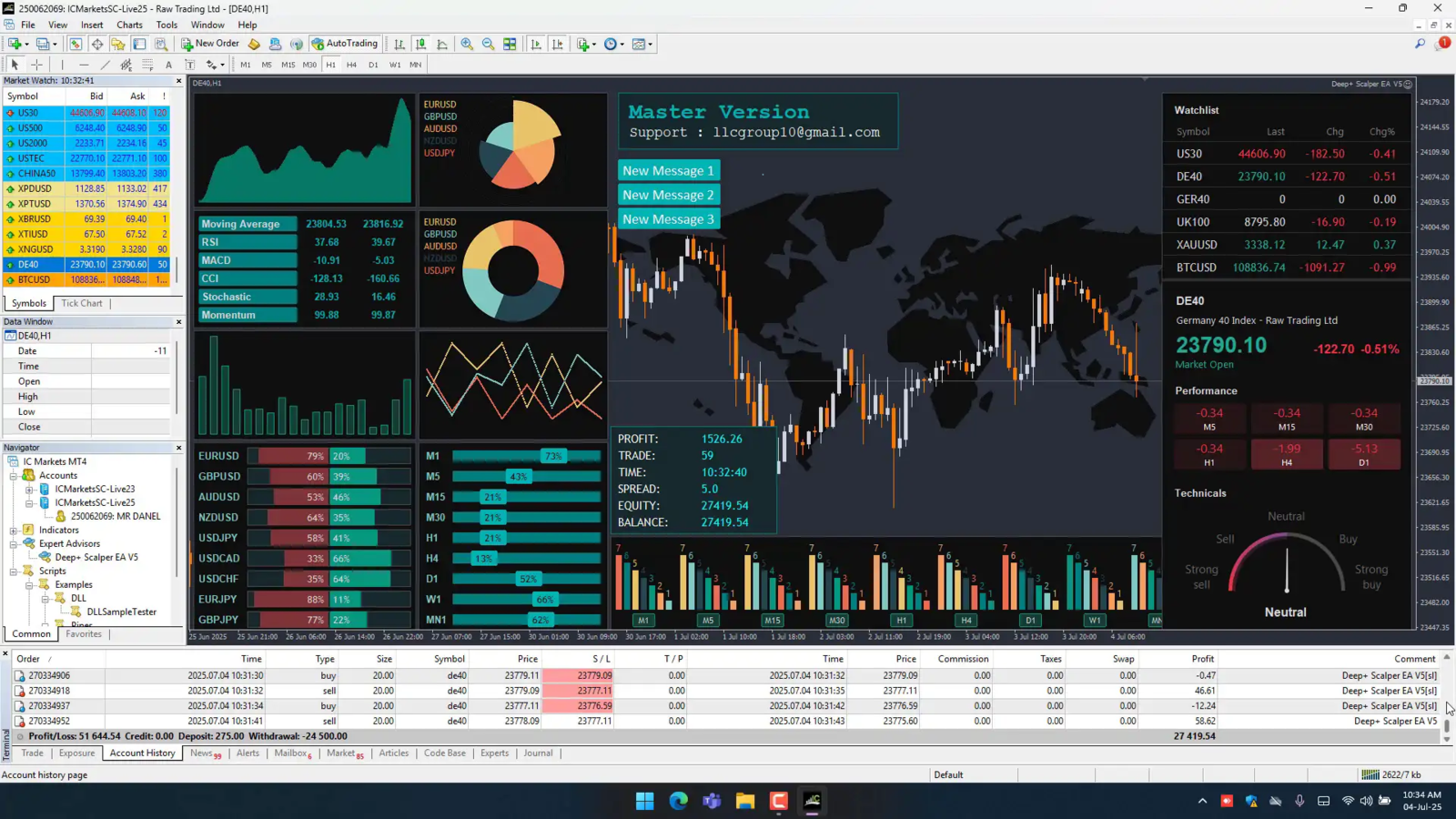 Supported Assets: US30, DE40, XAUUSD, BTC, all major FX pairs