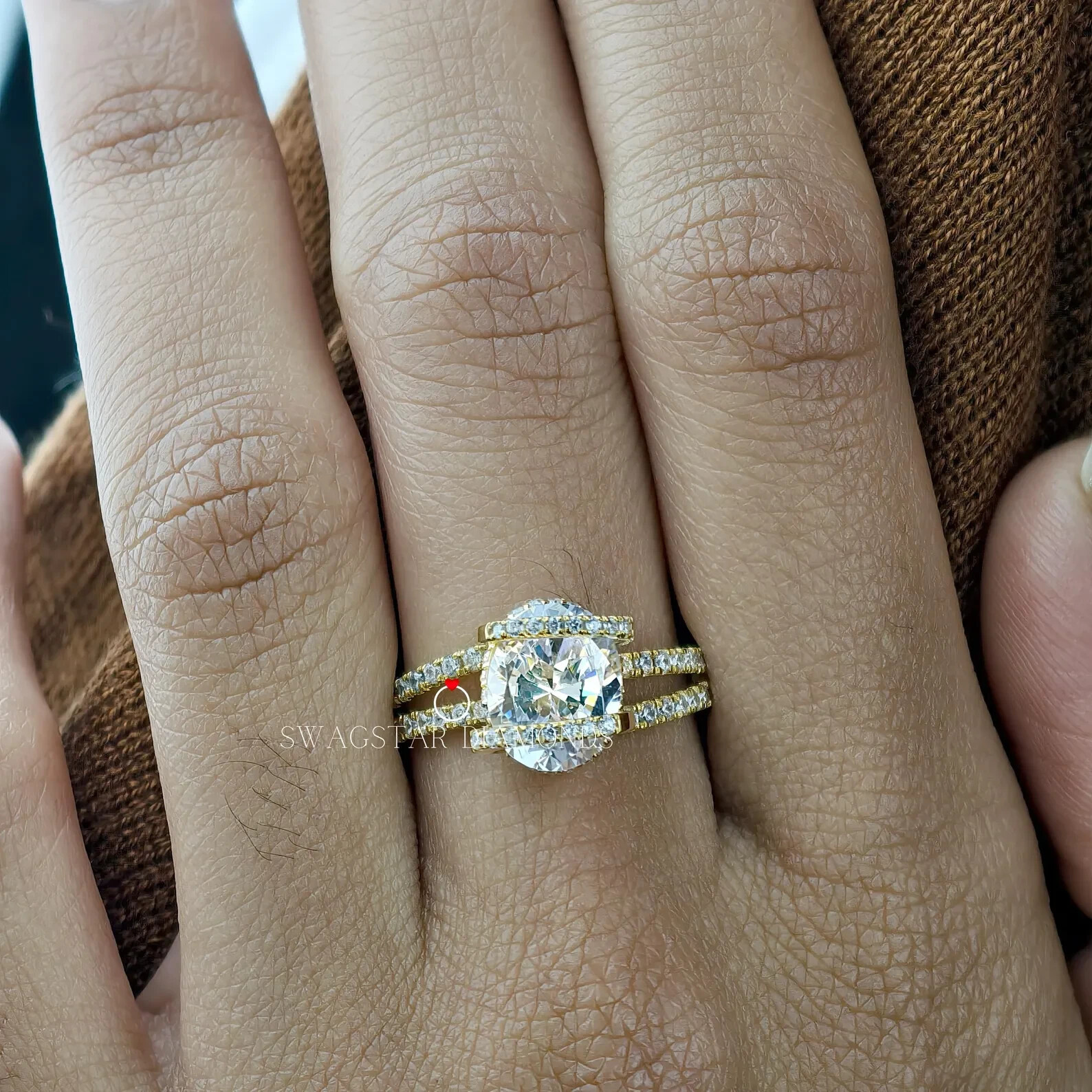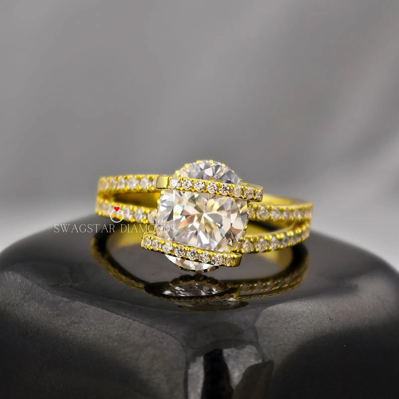 Oval Cut Engagement Ring Lab Grown Diamond, 2 CT Diamond Ring, Bypass Shank Ring