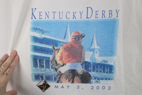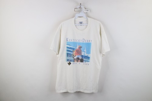 Vintage Y2K Mens Large 2003 129th Kentucky Derby Horse Racing T-Shirt White