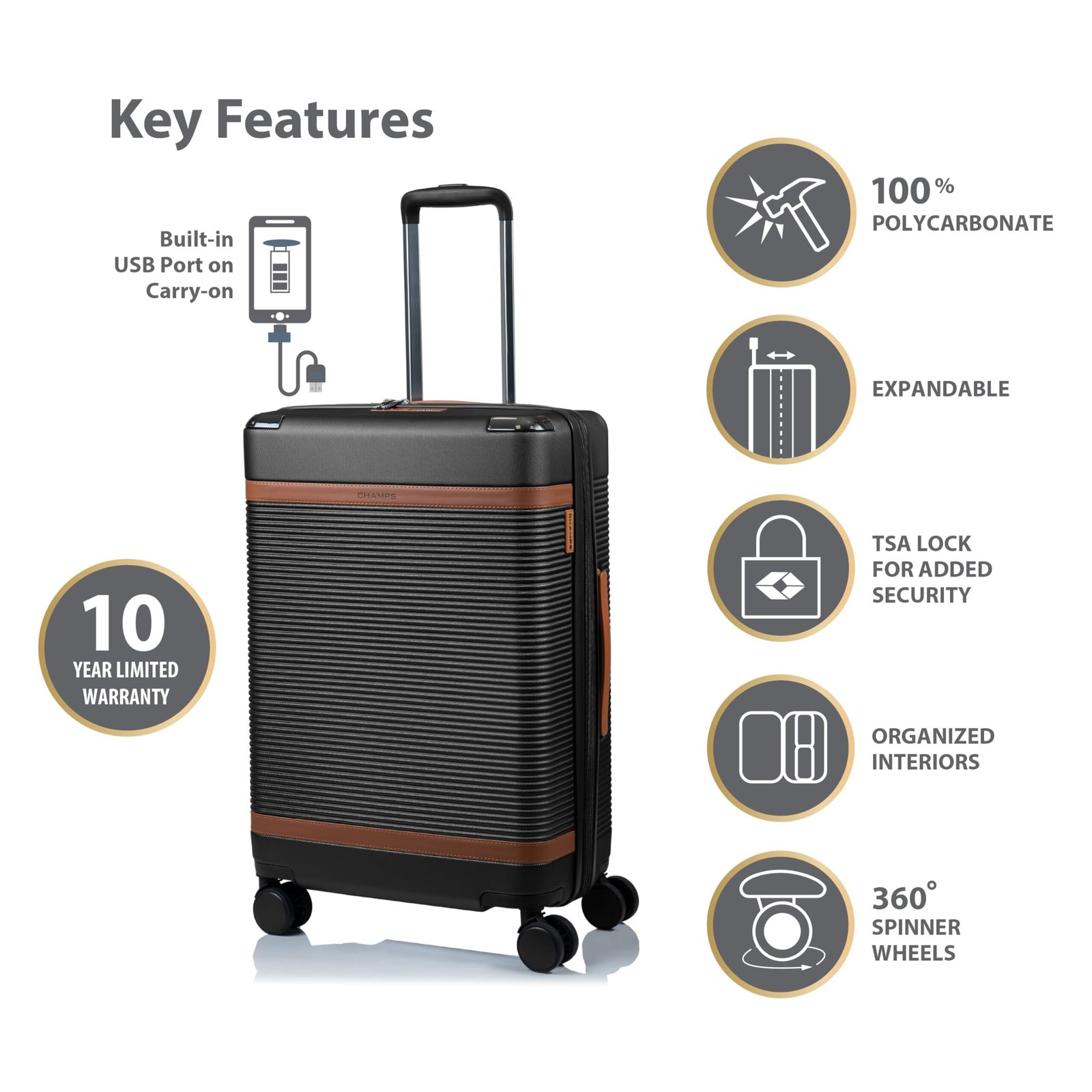 CHAMPS 'VINTAGE III COLLECTION' 3-PIECE EXPANDABLE HARDSIDE SPINNER LUGGAGE SET