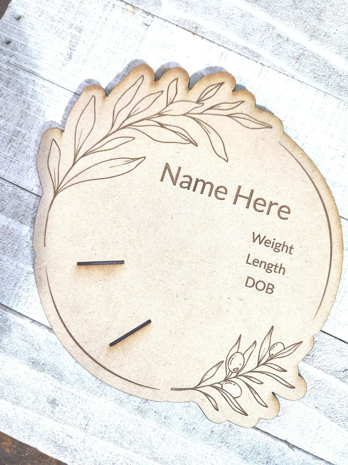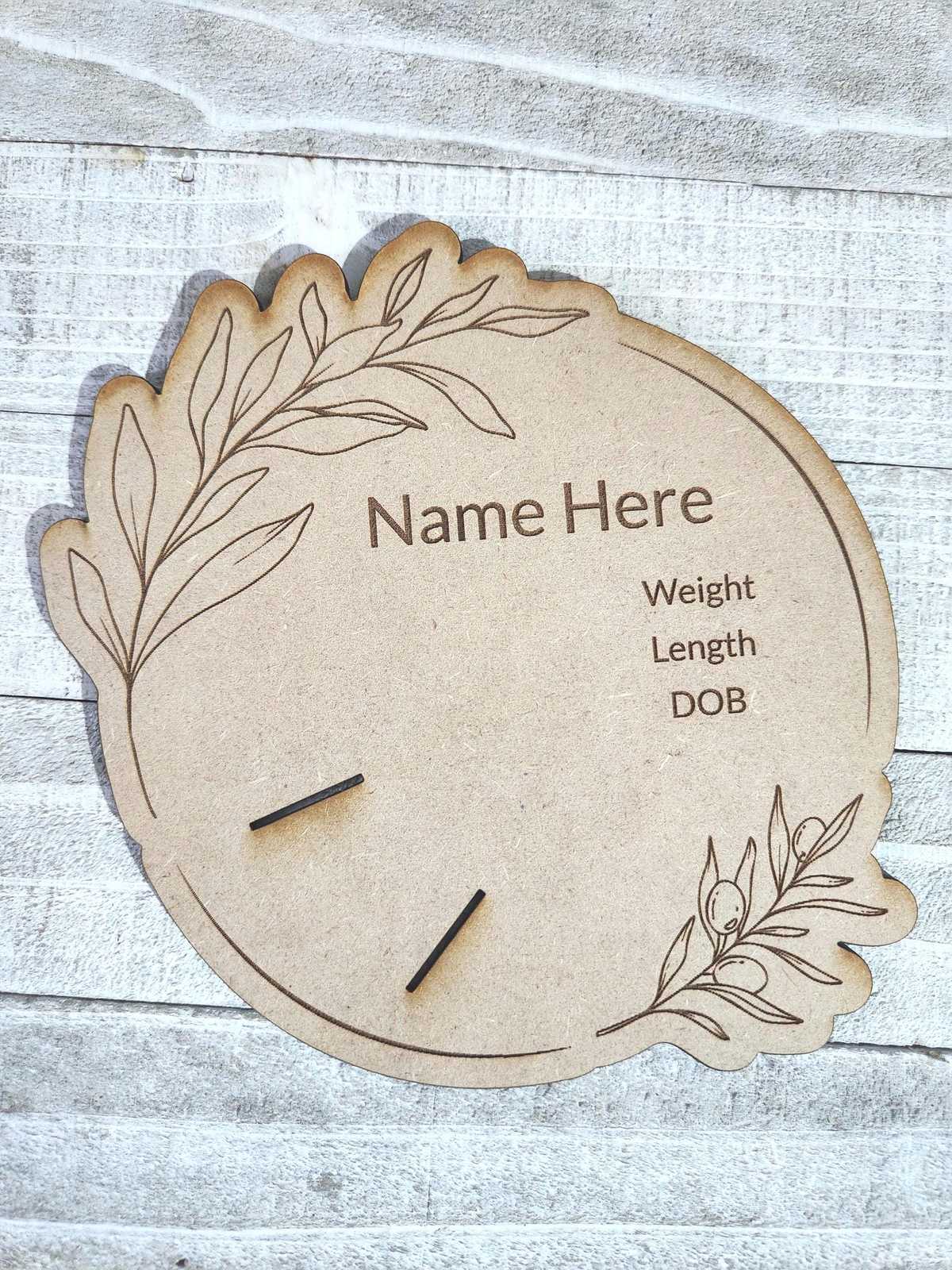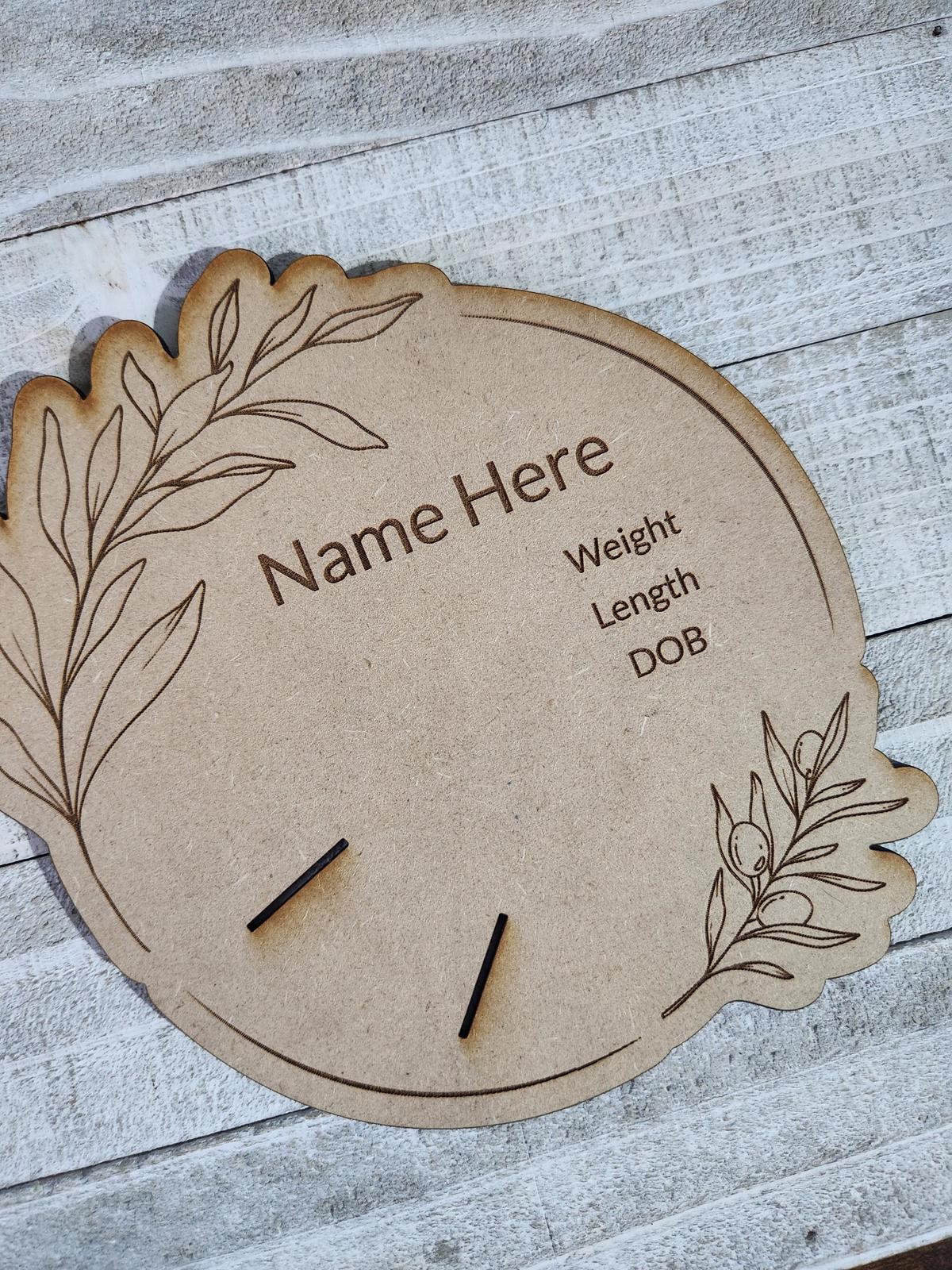 Laser Engraved Newborn Stats Sign with Birth Bracelet Holder