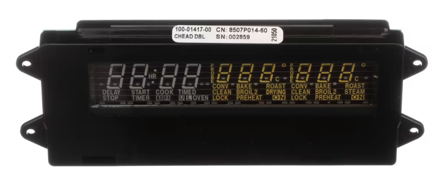 The Whirlpool 100-01417-00 / 8507P014-60 / 002859 Control Board restores precise oven operation with reliable digital controls. As a genuine OEM replacement, it guarantees compatibility, enhances performance, and extends the life of your wall oven or range. Replacing a faulty control board is a cost-effective solution to bring your appliance back to peak performance.