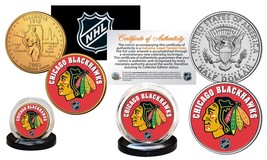 CHICAGO BLACKHAWKS 2-Coin Set JFK Half Dollar Gold State Quarter NHL LICENSED