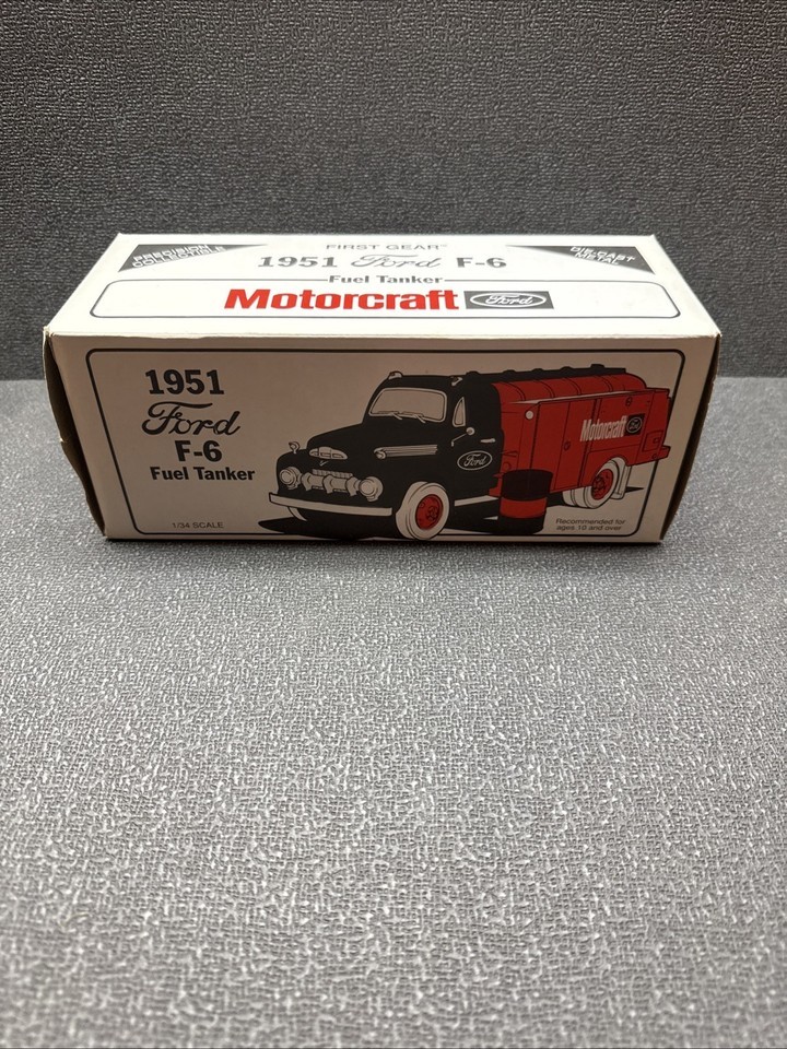 First Gear 1951 Ford F-6 Motorcraft Fuel Tanker #20-1124 Die Cast 1:34 NIB. Condition is New. Shipped with USPS Ground Advantage.