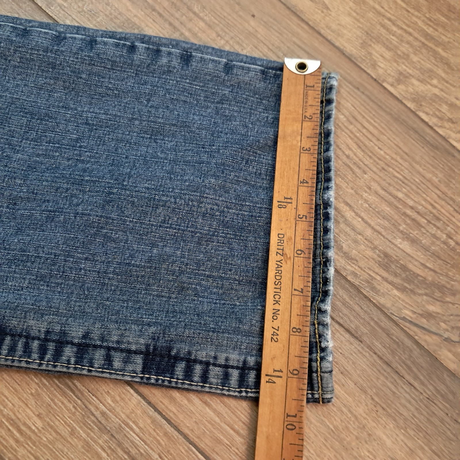 Distressing/whiskering style.
