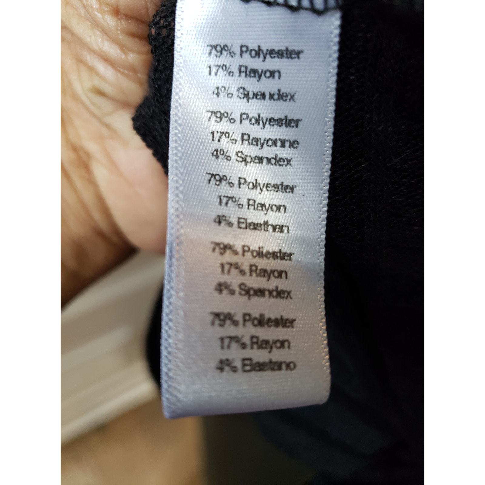 Material: 79% Polyester, 17% Rayon, 4% Spandex