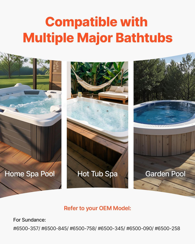 Fit Most Popular Bathtub: Our spa pump comes with two 2-inch connectors and a 90 rotating interface for easy installation even in tight spaces. Refer to your OEM Model: For Sundance: #6500-357/ #6500-845/ #6500-758/ #6500-345/ #6500-090/ #6500-258
