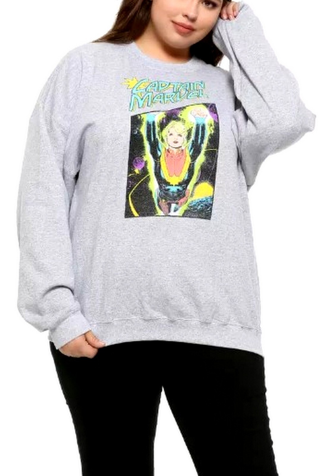 Marvel Captain Marvel Plus Size Glow Girls Women Pullover Sweatshirt (Size: 2)