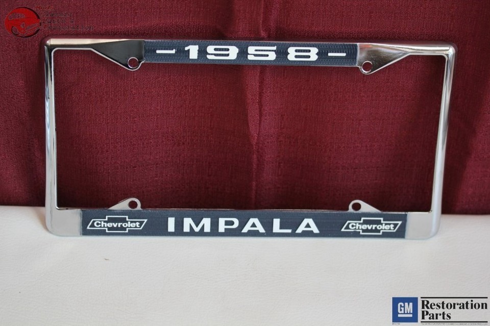 1958 Chevy Impala GM Licensed Front Rear License Plate Holder Retainer Frame