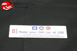 1969 Camaro, Impala 250/155HP "Keep Your GM All GM" Code "CO" Decal (New)