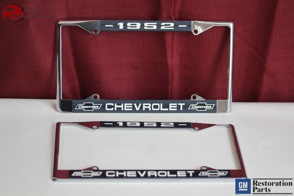 1952 Chevy Chevrolet GM Licensed Front Rear Chrome License Plate Holder Frames