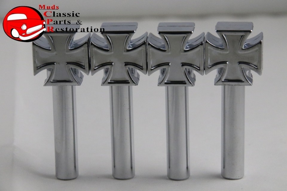 Chrome Maltese Iron Cross Door Lock Latch Knobs Custom Truck Hot Rat Street Rod