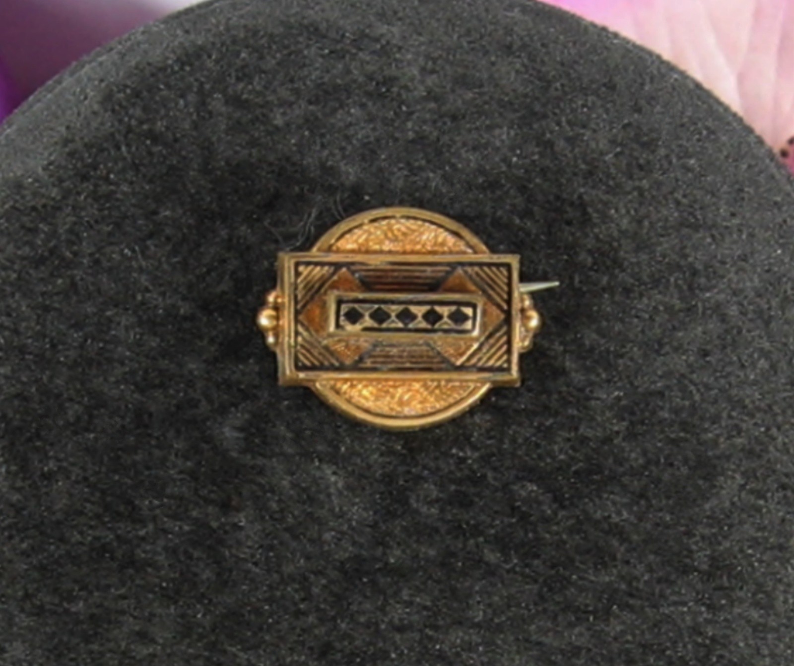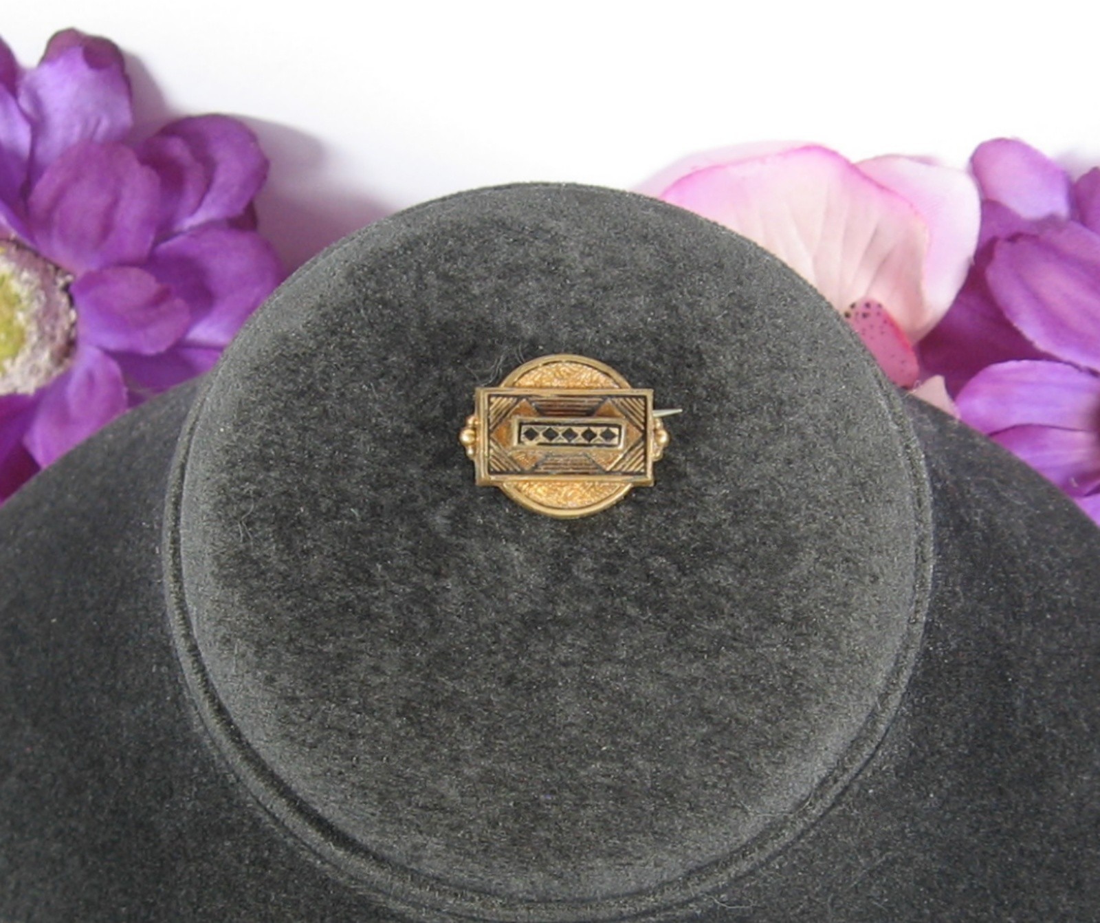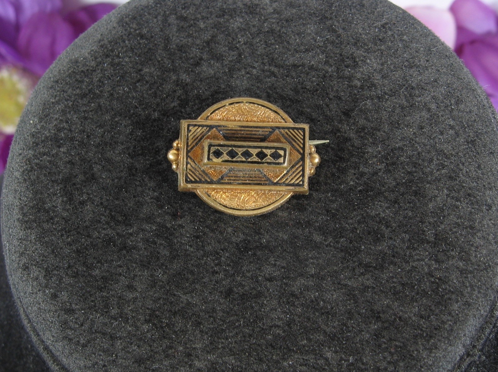 Czechoslovakia Art Deco LAPEL PIN Vintage Black Goldtone Tube Hinge 7/8" AS IS