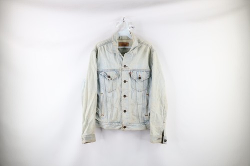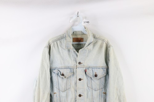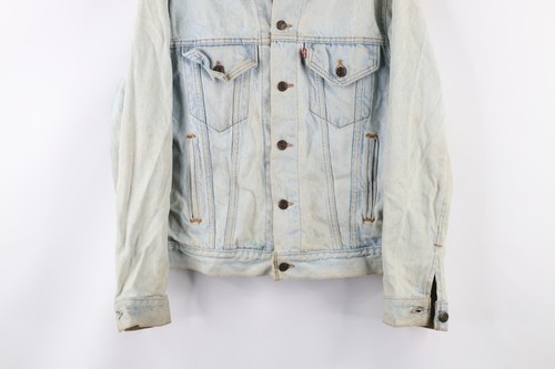 Vintage 80s Levis Mens 40R Thrashed Type III Denim Jean Trucker Jacket Blue USA