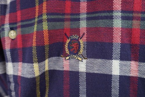 Vintage 90s Tommy Hilfiger Golf Mens XL Faded Spell Out Rainbow Plaid Polo Shirt
