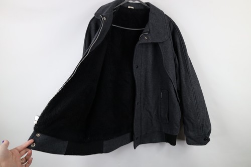 Vintage 90s Streetwear Mens Size 40 Sherpa Fleece Lined Wool Bomber Jacket Gray