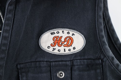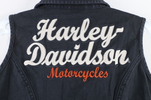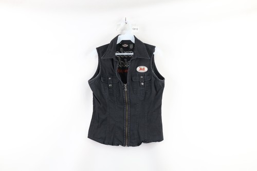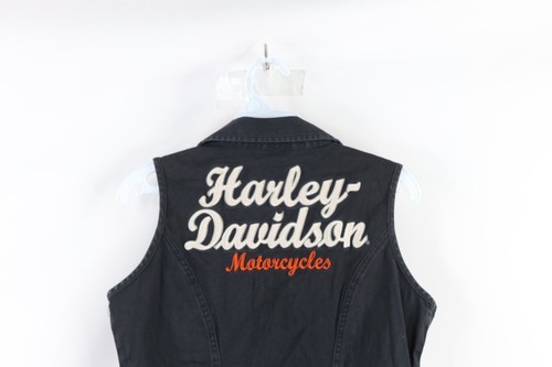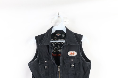 Vintage Harley Davidson Womens Small Faded Spell Out Full Zip Moto Vest Jacket