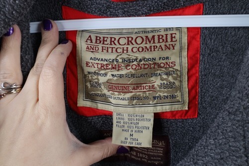 Vtg 90s Abercrombie & Fitch Mens M Spell Out Fleece Lined Hooded Anorak Jacket