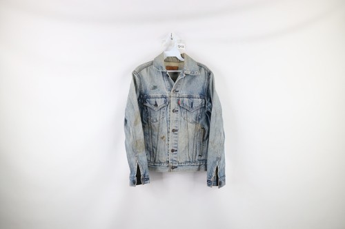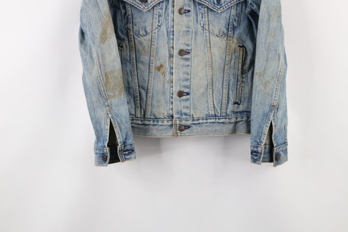 Vintage 80s Levis Mens 34R Thrashed Type III Denim Jean Trucker Jacket Blue USA