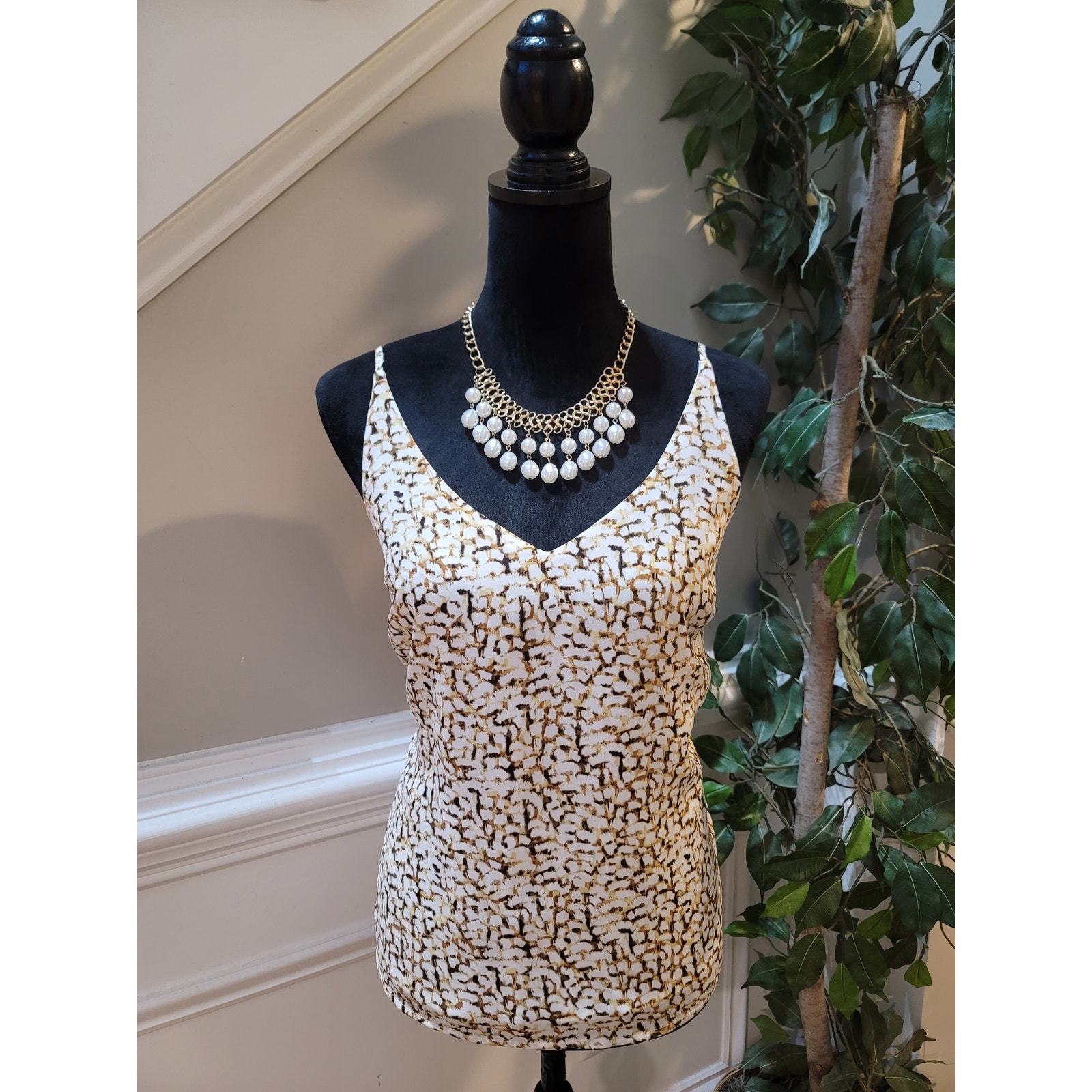Banana Republic Blouse Women's Size Small Brown White Sleeveless Tank Top