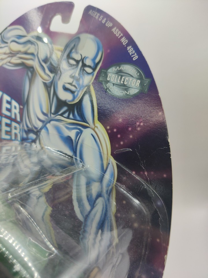 This green plastic action figure comes with accessories and is part of the Silver Surfer series. Manufactured in 1997 by ToyBiz, this original piece is a must-have for fans of comics and action figures from the 1990s. With adjustable features, this item is a nostalgic addition to any collection of vintage toys.