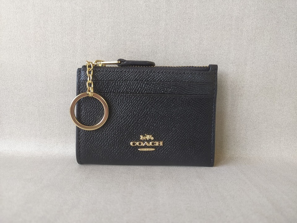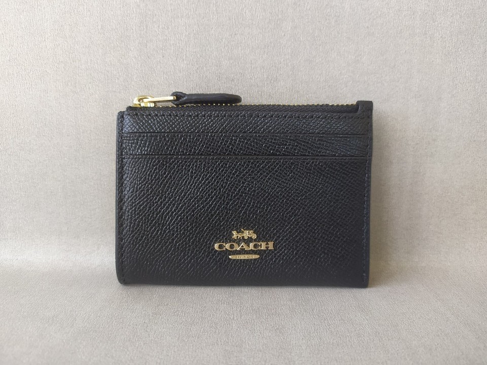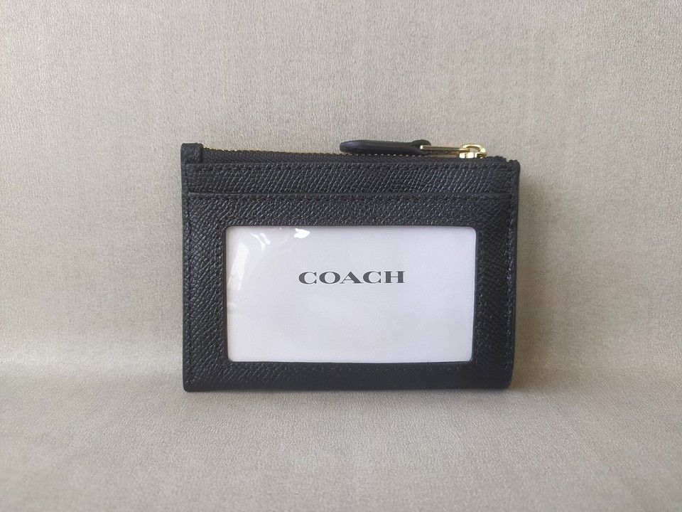 Coach Mini schmales Kartenetui mit Reißverschluss aus genarbtem Leder...