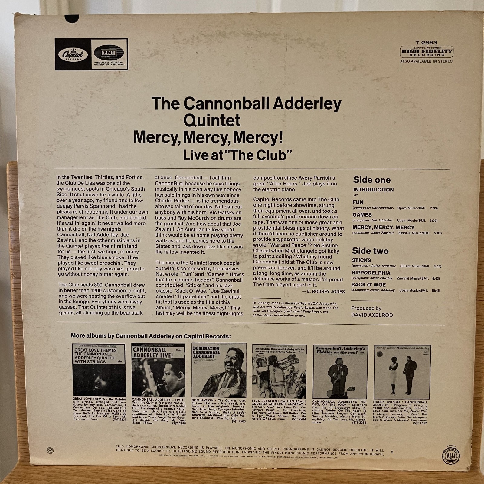 Cannonball Adderley Quintet Mercy Mercy Mercy Vinyl LP Capitol T2663 Mono 1967