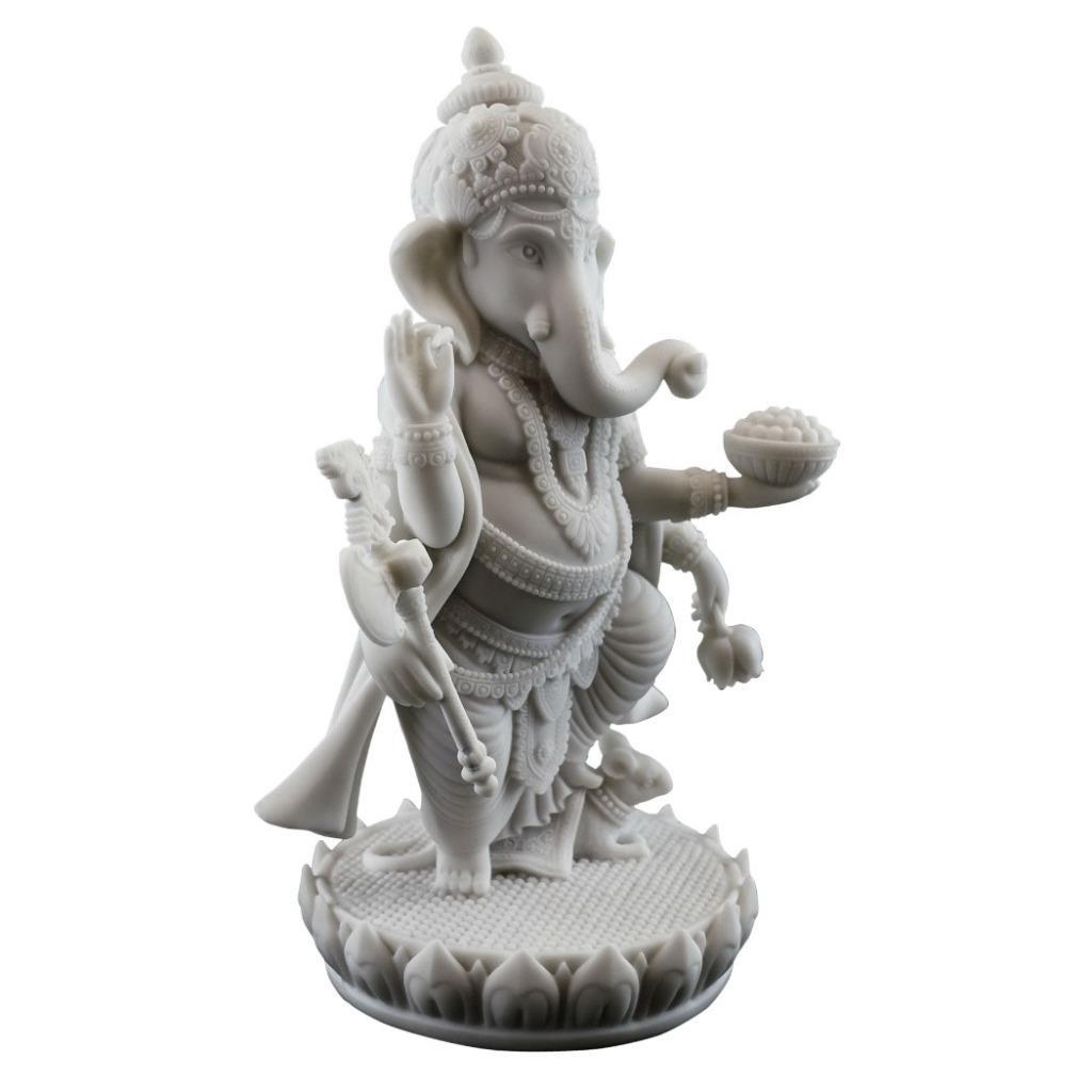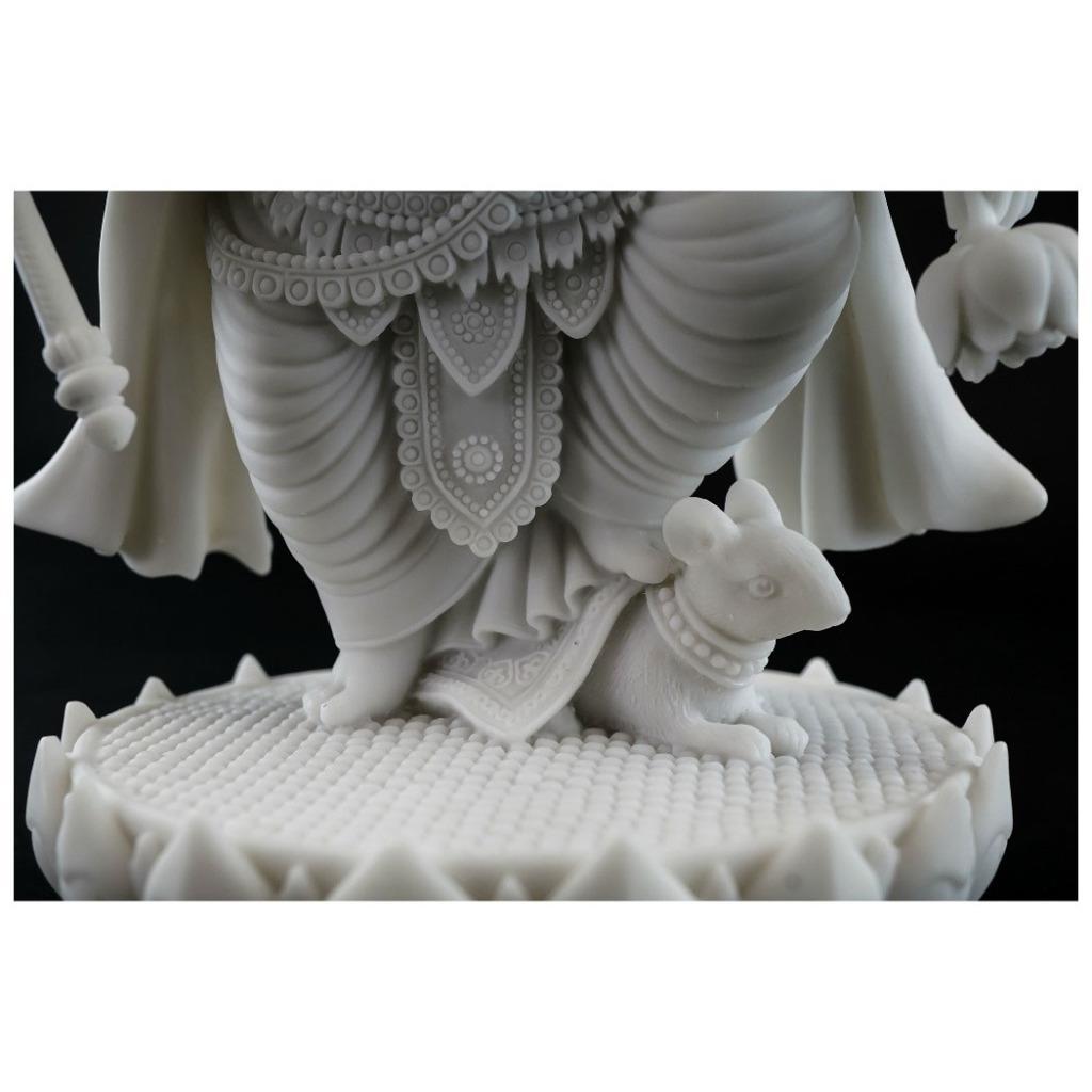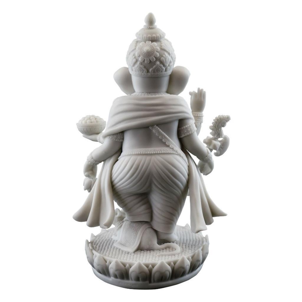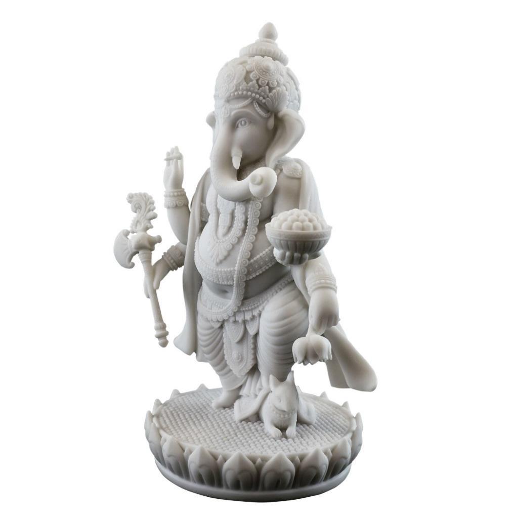 GANESHA STATUE 7.5" Standing Hindu Elephant God White Marble Finish Resin Ganesh
