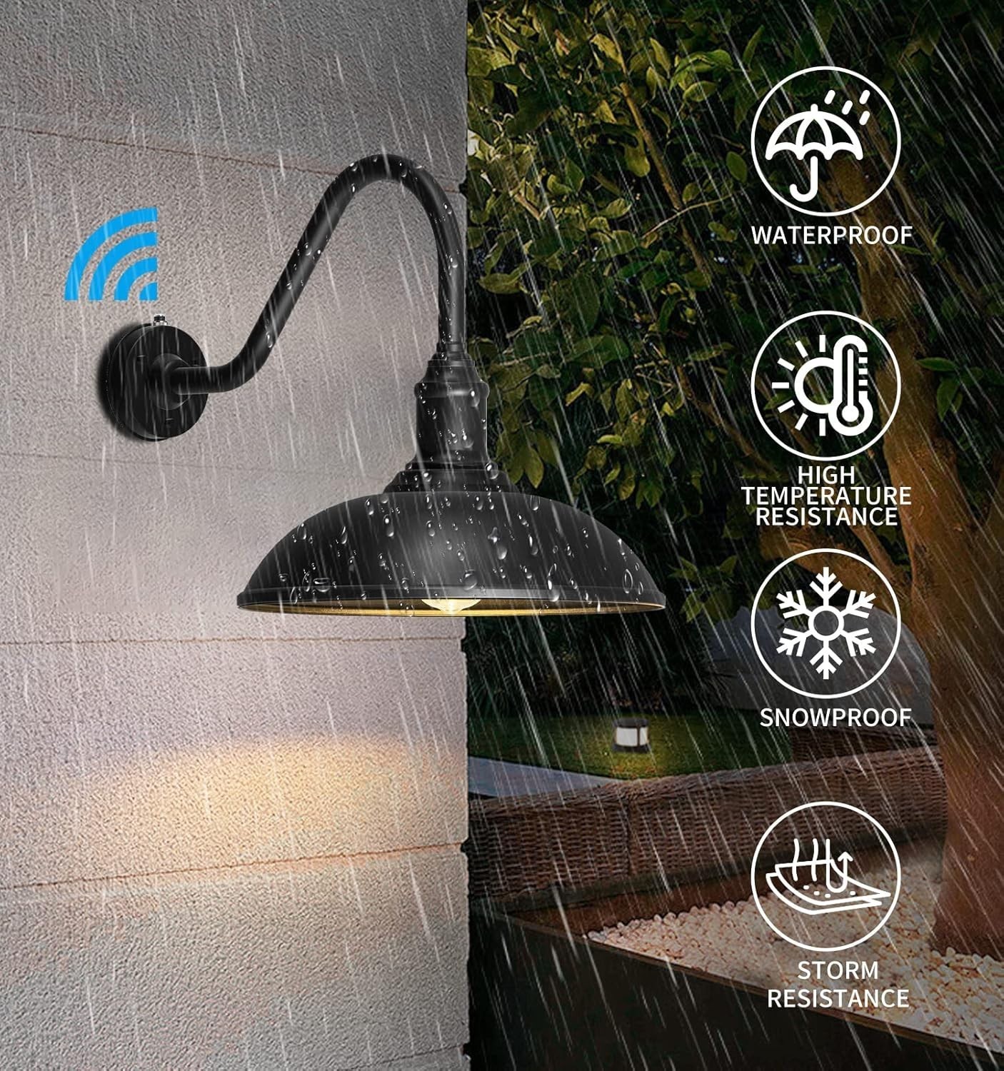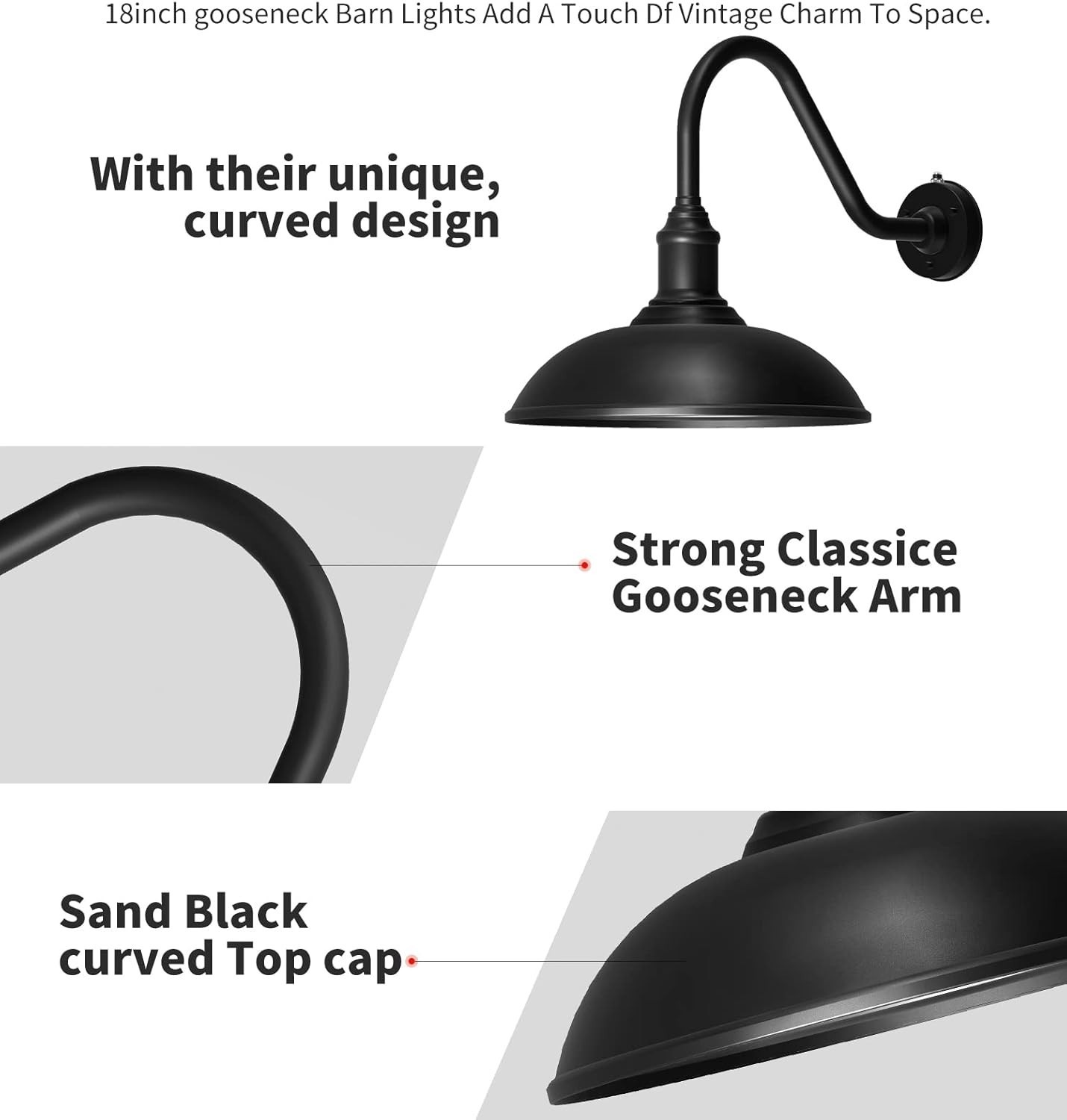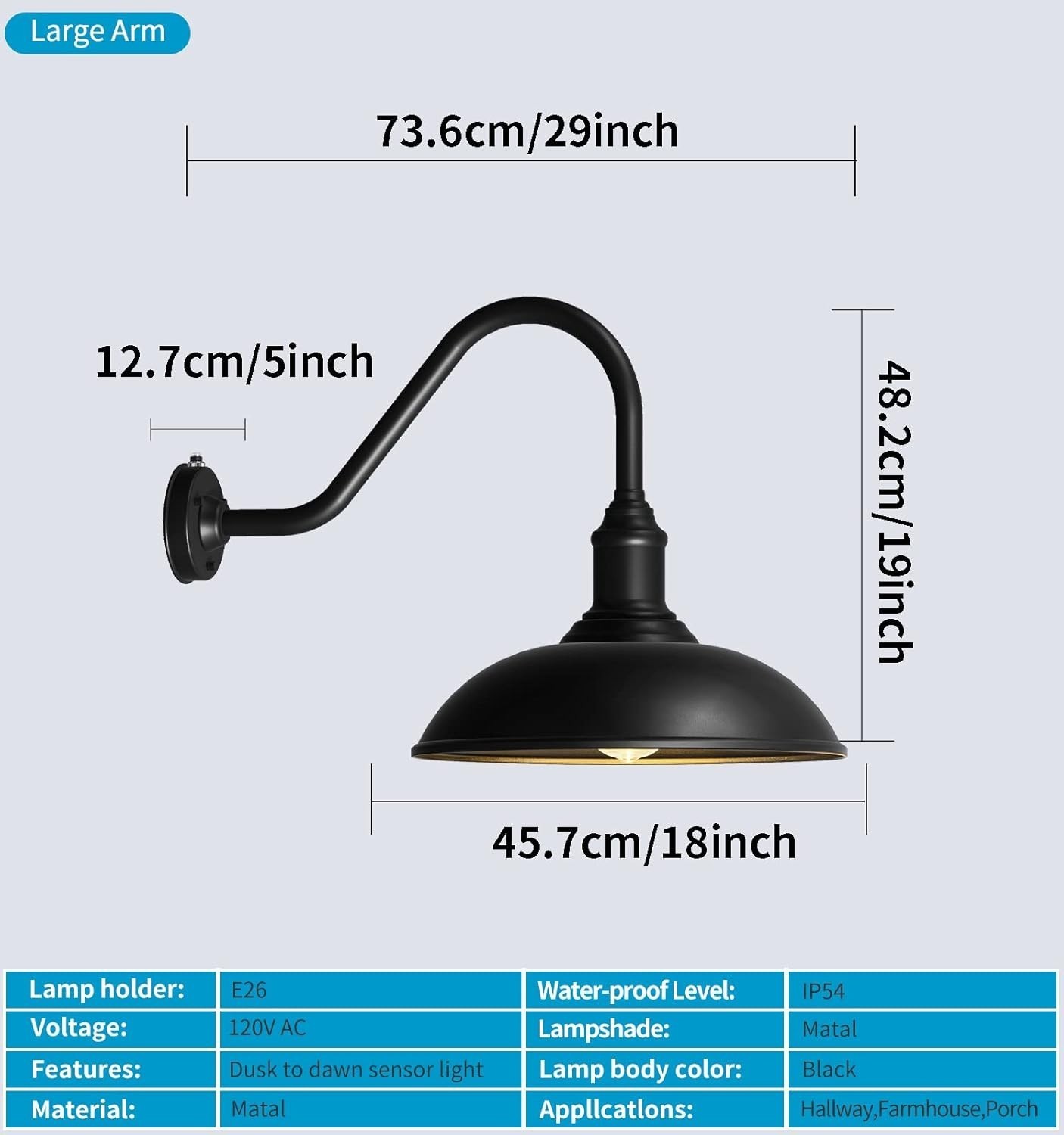 High Quality Material Gooseneck Light:This Outdoor Gooseneck Light Is Made Of Durable Black Powder Coating, Which Provides Excellent Protection Even In The Harshest Environments! The Paint Will Not Fade After Long-Term Use, Keeping The Lamp Beautiful As New. We That The Products You Receive Are Carefully Crafted And Strictly Inspected